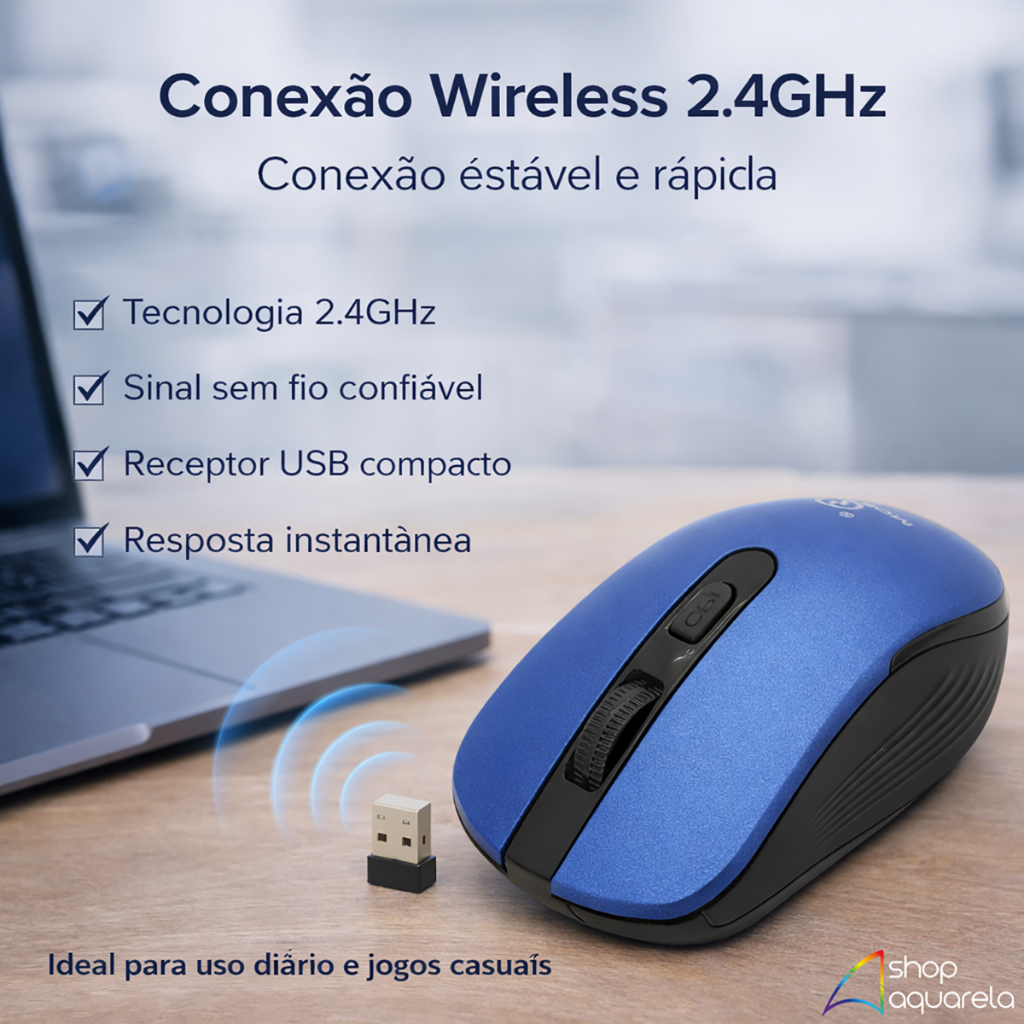 Mouse Sem Fio Wireless 2.4GHz Ergonômico Kapbom KA-602D com Receptor USB Praticidade e conforto para o seu dia a dia. O Mouse Sem Fio Kapbom KA-602D oferece conexão wireless 2.4GHz estável e responsiva, ideal para trabalhar, estudar ou navegar com mais liberdade, sem fios atrapalhando. Com design ergonômico e sensor óptico, proporciona controle preciso e uso confortável por longos períodos. É só conectar o receptor USB e usar, sem necessidade de instalação. ⭐ BENEFÍCIOS NO USO DIÁRIO • Conexão wireless 2.4GHz rápida e estável • Design ergonômico para uso confortável • Sensor óptico com boa precisão • Plug & Play: conectou o receptor, usou • Leve, compacto e fácil de transportar • Ideal para trabalho, estudos e uso doméstico • Compatível com PC e notebook • Excelente custo-benefício ⚙️ INFORMAÇÕES DO PRODUTO • Marca: Kapbom • Modelo: KA-602D • Tipo: Mouse sem fio • Conexão: Wireless 2.4GHz (via receptor USB) • Sensor: Óptico • Botões: 3 (esquerdo, direito e scroll) • Alimentação: 1 pilha AA (não inclusa) • Alcance: Aproximadamente até 10 metros (varia conforme ambiente) • Compatibilidade: Windows, macOS e Linux • Indicado para: PC, notebook e dispositivos com porta USB 📦 O QUE ACOMPANHA O PRODUTO • 1 Mouse sem fio Kapbom KA-602D • 1 Receptor USB wireless Obs: Não acompanha pilha. ❓ DÚVIDAS FREQUENTES • Funciona em notebook? Sim. Funciona em notebooks e computadores com entrada USB. • Precisa instalar drivers? Não. É Plug & Play. • A conexão é Bluetooth? Não. A conexão é 2.4GHz via receptor USB. • Qual pilha utiliza? 1 pilha AA (não inclusa). 🛒 FINALIZAÇÃO Garanta já o seu com envio rápido e compra segura pela Shopee. Qualquer dúvida, estamos à disposição no chat.
