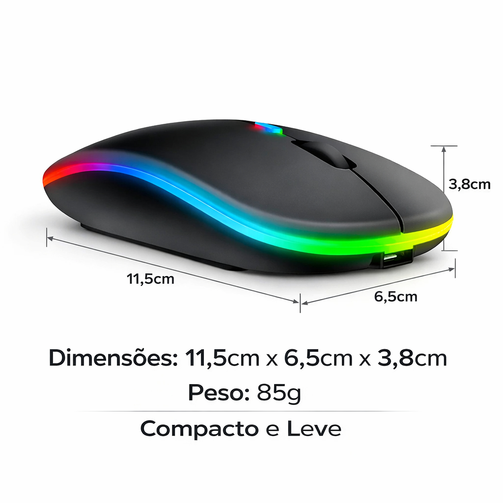 Mouse sem fio wireless rgb MODERNO COMPACTO FUNCIONAL ESCRITORIO JOGOS dual band receptor nano