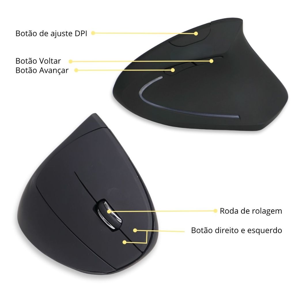 | Mouse Vertical Ergonômico 2.4GHz Mouse Óptico Sem Fio 6 Botões este produto | R$ 48,51 | 19% | 4.8/5 | 13 |