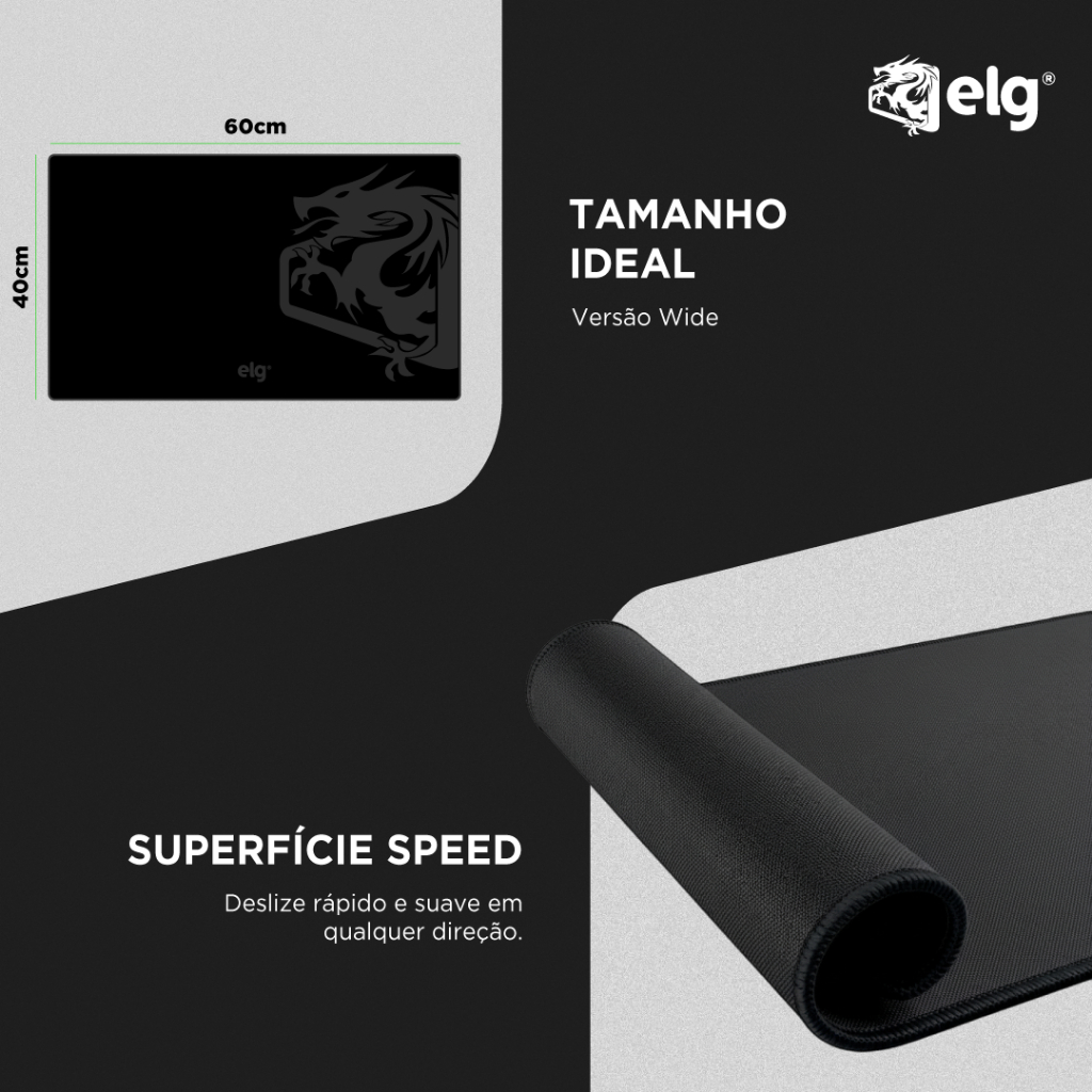 Você, dentro do jogo! Eleve sua experiência com ELG. Eleve sua precisão a um novo patamar com o Mousepad Gamer Merak. Desenvolvido para oferecer um deslize perfeito e controlado, ele é a base ideal para extrair o máximo de sensores ópticos e laser, garantindo a performance que você precisa para vencer. Fabricado com uma combinação premium de Poliéster e SBR, o Merak garante conforto e resistência. Sua superfície termicamente tratada oferece o atrito ideal para melhorar sua jogabilidade, enquanto as bordas com costura perfeita não desfiam, assegurando alta durabilidade. A base de borracha antiderrapante garante máxima estabilidade, mesmo durante os movimentos mais intensos, e o tratamento sweatproof oferece proteção contra o suor. Na embalagem você recebe 1 Mousepad Gamer Merak, pronto para transformar sua área de jogo e aprimorar sua mira. Características Técnicas Tipo: Mousepad Gamer Material: Poliéster e Borracha SBR Dimensões: 600 x 400 x 3mm Cor: Preto Extras: Base antiderrapante, borda com costura antidesfiamento, tratamento térmico para atrito controlado, sweatproof. IMPORTANTE :: As imagens dos produtos são meramente ilustrativas e podem apresentar pequenas variações de cor ou acabamento, conforme iluminação, resolução do monitor ou percepção visual. :: Objetos de decoração e itens adicionais exibidos nas fotos não acompanham o produto. :: Todas as informações técnicas e características dos produtos são de responsabilidade da marca ELG, podendo sofrer alterações sem aviso prévio. :: Os pedidos são sempre enviados de forma completa. Caso haja produtos com prazos de postagem diferentes, será considerado o maior prazo para envio do pedido. :: Valores e condições podem ser alterados sem aviso prévio e são válidos exclusivamente para compras realizadas neste site. :: A garantia ELG é limitada ao produto e não cobre danos ocasionados por mau uso, instalação incorreta ou manuseio inadequado. SOBRE A ELG: A ELG é uma empresa brasileira que preza pela alta qualidade. Nossa política é aplicada em toda linha de produtos e garante que os consumidores possam adquirir itens que foram amplamente testados.