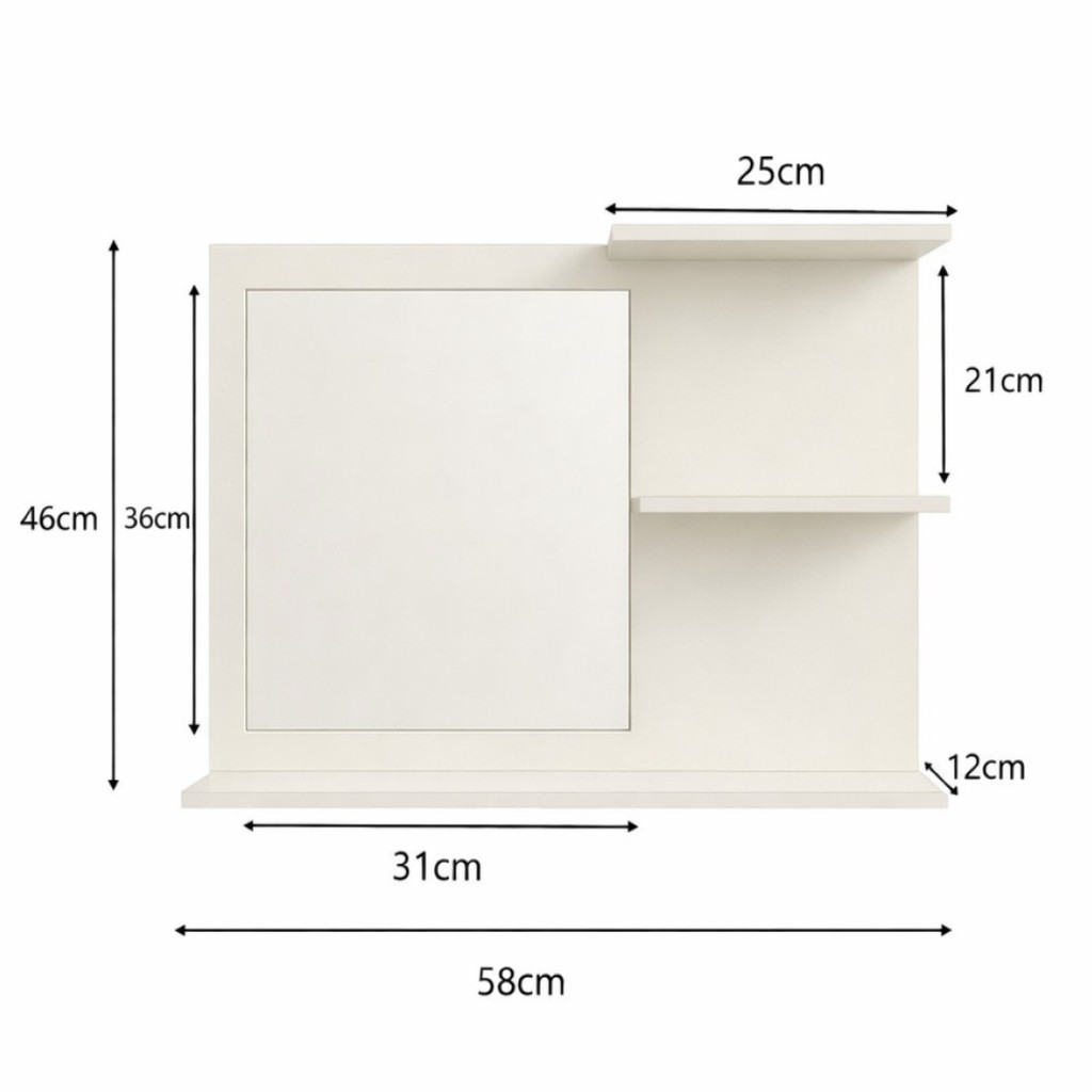 Móvel Multiuso MDF Com Espelho P/ Banheiro Moderno Off White