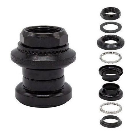 Jogo Caixa Movimento De Direção Stander 22.2mm Bicicleta Marca: Paco Cód.: 9179 Acompanha: 01 - Cone inferior do garfo 01 - Cone superior do quadro 01 - Caixa inferior do quadro 01 - Caixa superior do quadro 02 - Colares 5/32x16 01 - Arruela com trava 01 - Porca - Material: Aço - Cor : Preto