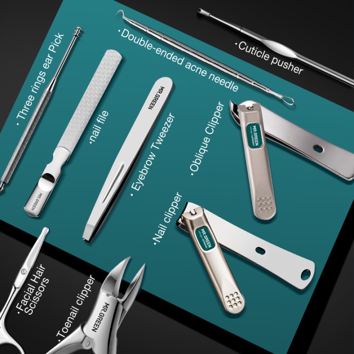 MR.GREEN Conjunto De Manicure 9 Em 1 Kit Prático Profissional Design Contraste Com Capa De Couro Cortador De Unha Aço Inoxidável Pessoal Cuidados Ferramenta