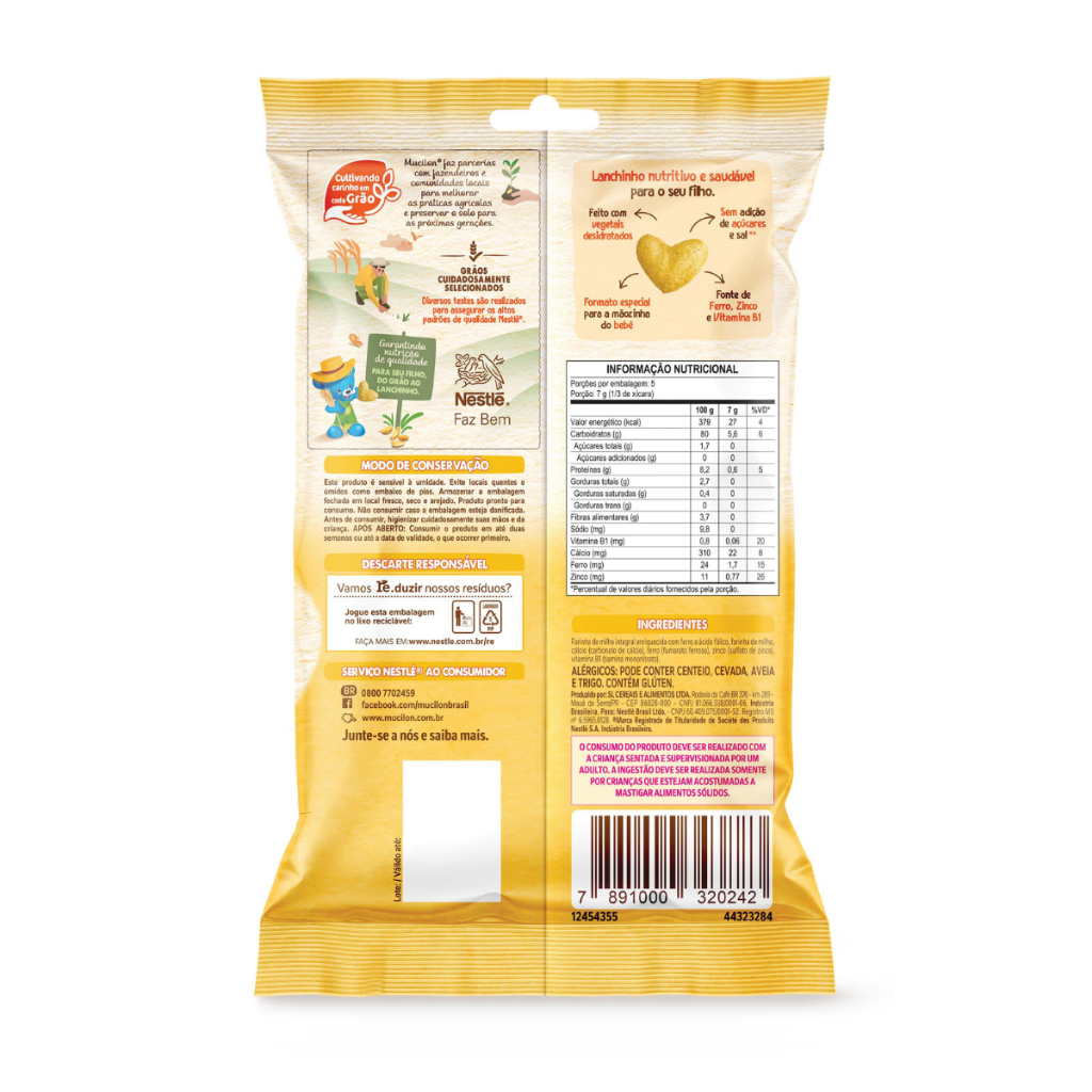 Estamos localizados próximo a capital de São Paulo para melho logistica. ***Mucilon Meu Primeiro Lanchinho - O Nestlé Mucilon Meu Primeiro Lanchinho é um snack desenvolvido especialmente para bebês, combinando alimentação saudável com praticidade para mamães e papais. Trata-se de um produto assado e integral, formulado sem adição de sal e açúcares, além de ser fonte de vitamina B1 e dos minerais essenciais ferro e zinco. - É indicado para bebês a partir de 8 meses de idade. - Buscamos oferecer a maior variedade possível de sabores. Na indisponibilidade de algum sabor, este poderá ser substituído por outro disponível. - Benefícios e diferenciais do snack Mucilon Meu Primeiro Lanchinho - Snack assado e integral - Sem adição de sal e açúcares - Fonte de vitamina B1 e de minerais essenciais (ferro e zinco) - Formato adequado para a mãozinha do bebê - Prático para o dia a dia de mamães e papais - Desenvolvido especialmente para bebês a partir de 8 meses - Elaborado com grãos cuidadosamente selecionados - Produzido com frutas naturais desidratadas ***Informações importantes ***O MINISTÉRIO DA SAÚDE ADVERTE: - Este produto não deve ser utilizado para crianças menores de 6 (seis) meses de idade, exceto por indicação expressa de médico ou nutricionista. O aleitamento materno evita infecções e alergias e é recomendado até os 2 (dois) anos de idade ou mais. ***O MINISTÉRIO DA SAÚDE INFORMA: - Após os 6 (seis) meses de idade, continue amamentando seu filho e ofereça novos alimentos.