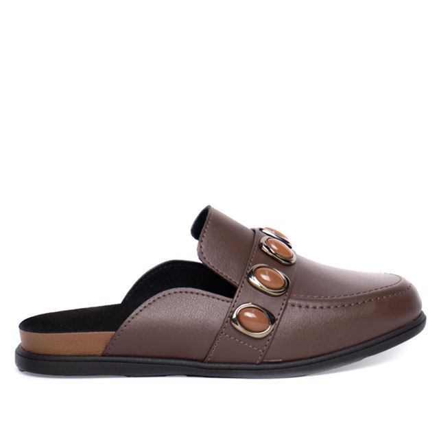 Mule Feminina Moleca Napa Aplicações Marrom Escuro
