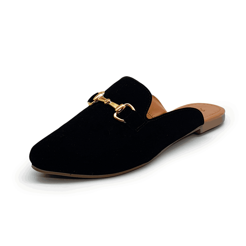 Mule Feminino Bico Fico em Nobuck Aveludado Sapatilha Rasteira Tamanhos Grandes