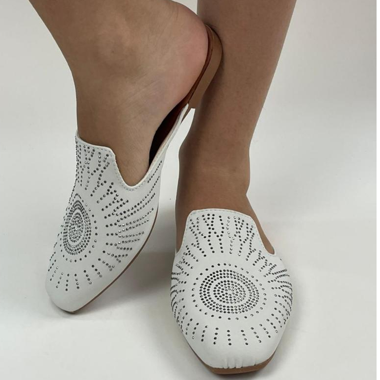 Mule Feminino Sapatilha Detalhe Rotifix Sol Bico Quadrado Sapato Muller Rasteirinha Ref.42