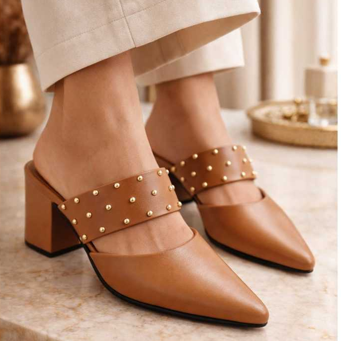 Mule Scarpin Feminino Modelo Carolina com spike Salto Bloco Tamanco Bico Fino