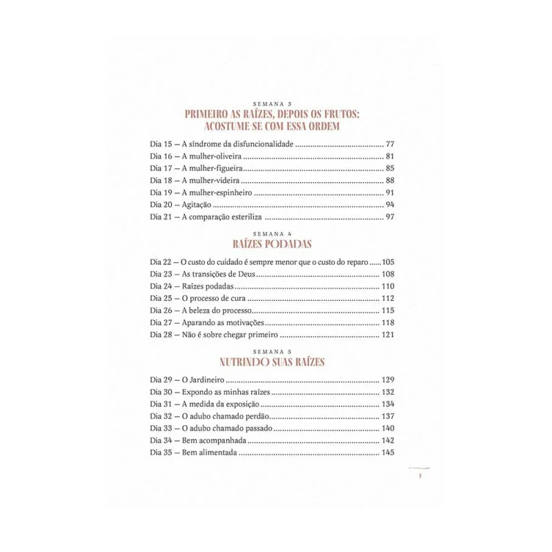 Livro Mulheres Enraizadas Descubra a profunda conexão entre suas raízes e a vida que você vive. No devocional "Mulheres Enraizadas" de Viviane Martinello, explore como suas emoções moldam seus frutos. Supere o desânimo, medo e rejeição, permitindo que Deus cure suas raízes para um florescimento abundante. Este devocional oferece orientação e esperança para a sua vida. Abra-se para a transformação e abrace um futuro cheio de propósito. “Ele será como uma árvore plantada junto às águas e que estende as suas raízes para o ribeiro. Ela não temerá quando chegar o calor, porque as suas folhas estão sempre verdes; não ficará ansiosa no ano da seca nem deixará de dar fruto.” (Jeremias 17.8) Título: Mulheres Enraizadas Autor(es): Viviane Martinello Ano de Edição: 2023 Capa: Brochura Acabamento: Laminação Fosca Miolo: Papel Offset Cream Páginas: 224 Dimensões: Altura: 23 cm Largura: 15 cm Profundidade: 1,0 cm Peso: 0,400 kg ISBN: 9786555844382 Editora: Editora Vida