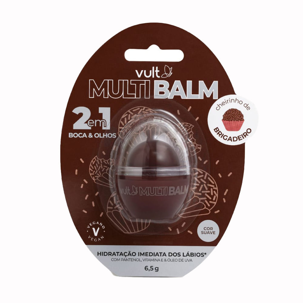 Multi Balm Vult 2 em 1 Boca & Olhos - Brigadeiro 6,5g Conheça o Multi Balm Vult 2 em 1 Boca & Olhos na irresistível cor Brigadeiro! Este bálsamo multifuncional é a escolha perfeita para quem busca pra