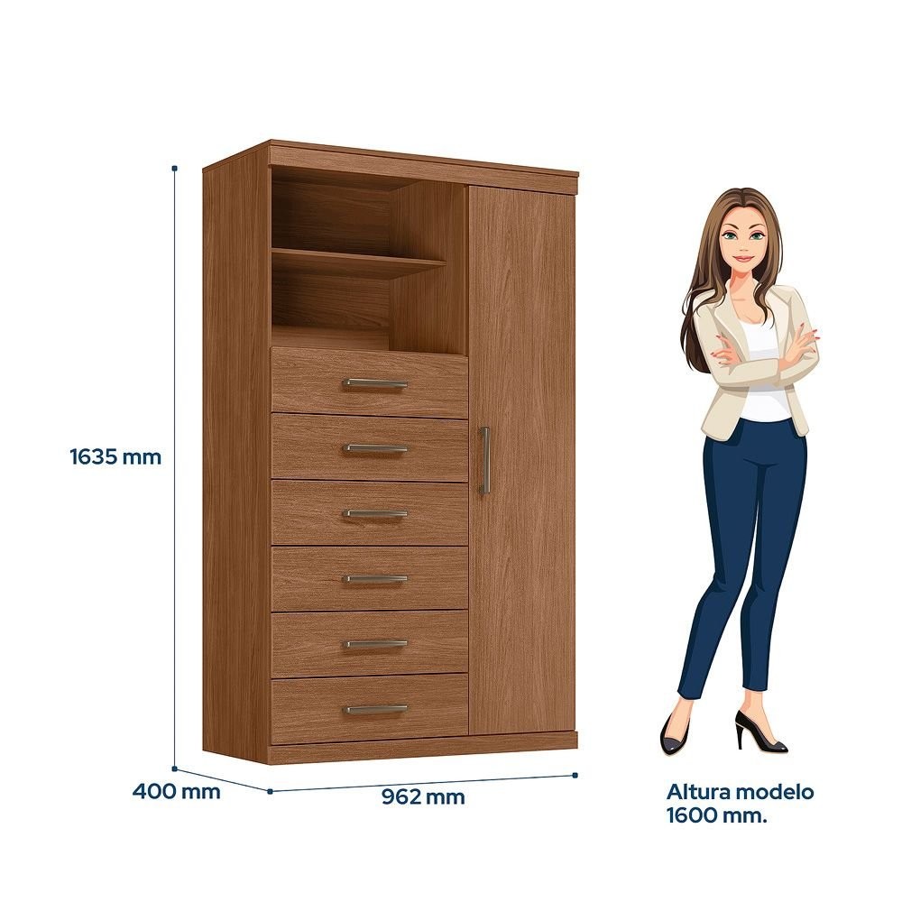 Multi-cômoda 1 Porta 6 Gavetas Marabá Jatoba