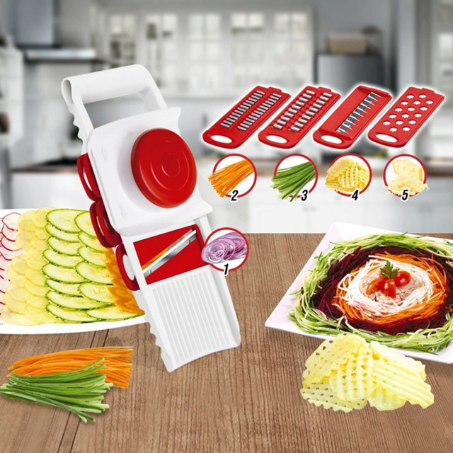 Multi Cortador Fatiador Ralador 5 Lâminas Diferentes Com Travas 5 em 1 Keita