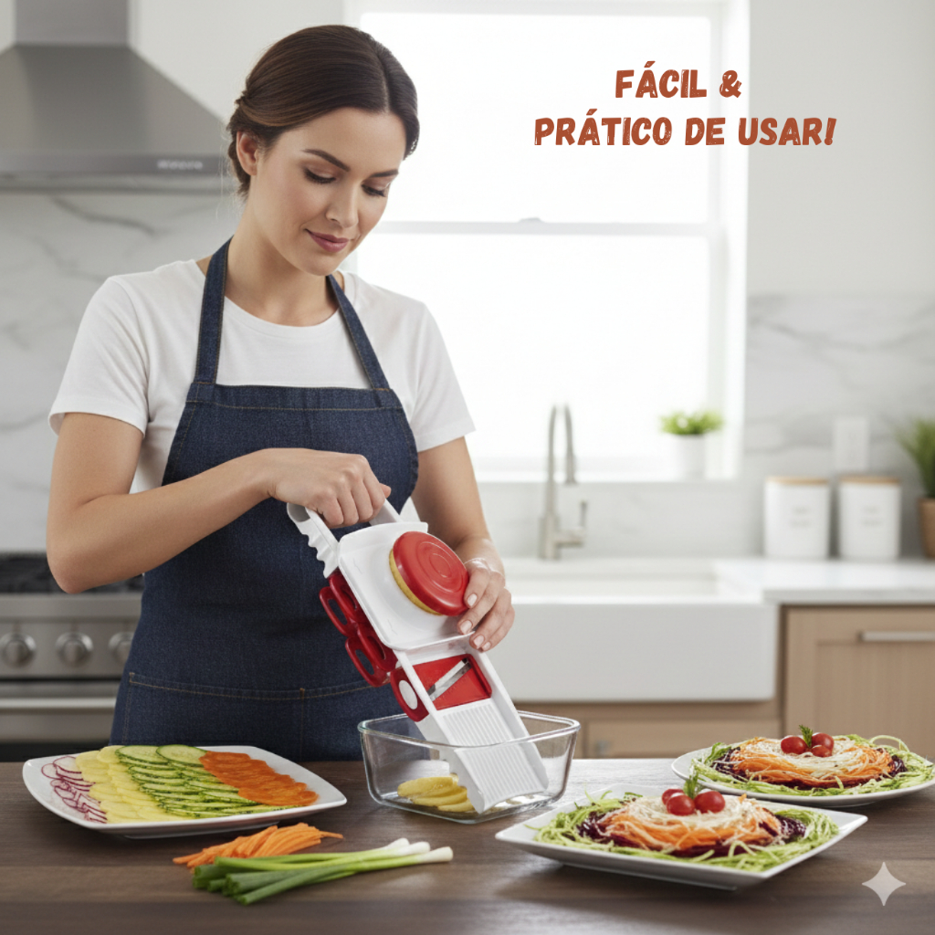 Multi Cortador 5 em 1 – Mais praticidade na sua cozinha! Prepare legumes, frutas e verduras em segundos, com cortes perfeitos e sem esforço. O Multi Cortador 5 em 1 substitui vários utensílios, economiza tempo e deixa suas receitas muito mais bonitas e padronizadas. 5 funções em 1 só produto: fatiador, ralador, mandolin, descascador e boleador Lâminas intercambiáveis em aço resistente – corte rápido e preciso Fácil de usar e limpar – ideal para o dia a dia Mais segurança no manuseio, sem risco de acidentes Perfeito para legumes, frutas e verduras Ideal para quem quer agilidade na cozinha, menos bagunça e resultados profissionais em casa. Conteúdo da embalagem: 1 Multi Cortador 5 em 1 5 lâminas intercambiáveis Produto prático, funcional e com excelente custo-benefício. Compre agora e transforme sua rotina na cozinha!