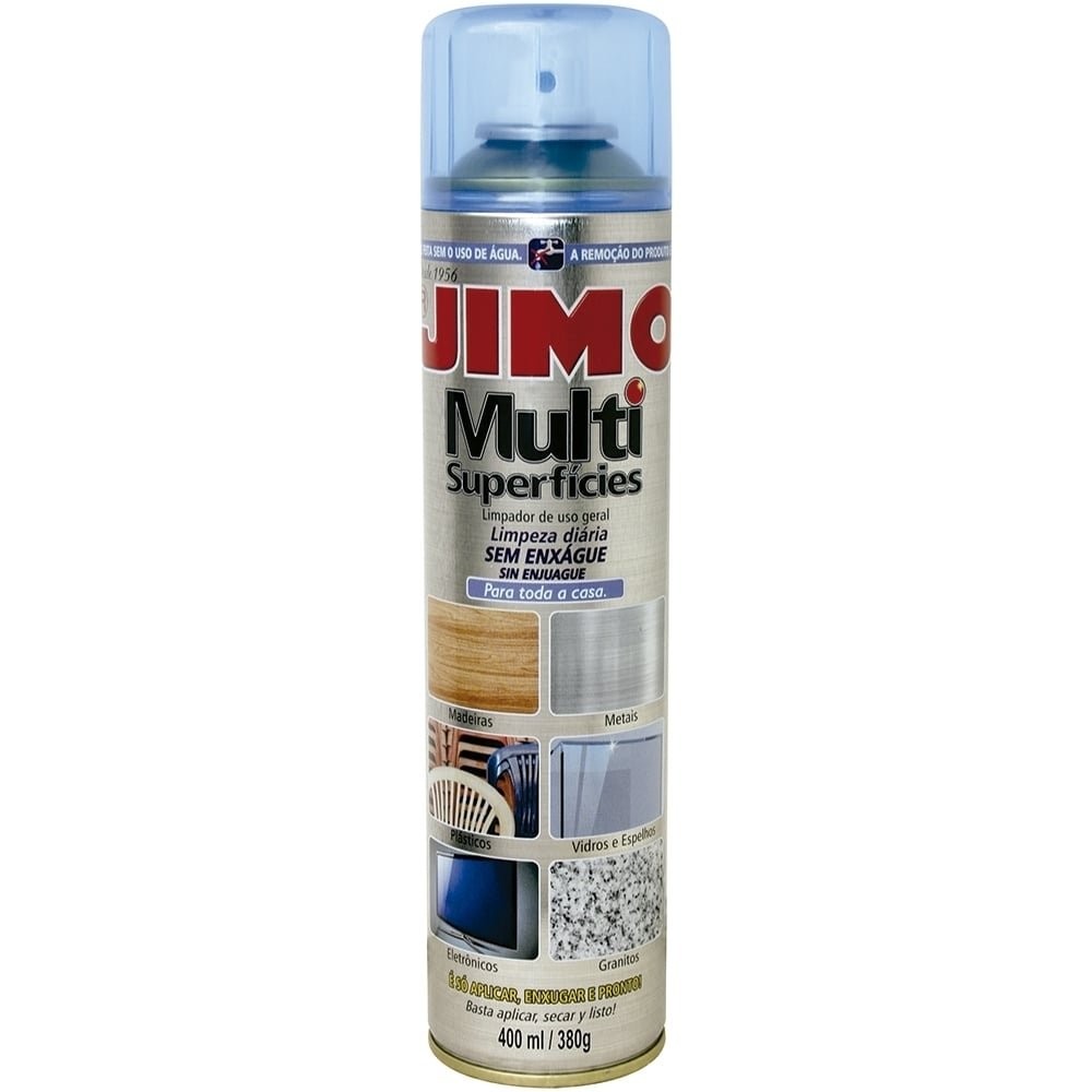 Características do Produto: Marca: Jimo Conteúdo: 400ml Ean: 7896027079050 Características Adicionais: ATENÇÃO: NÃO APLICAR O PRODUTO EM SUPERFÍCIES COM "EVOX" Limpa em segundos Não precisa de água para remoção Uso em diversas superfícies: Cromados, acrílicos, azulejos, boxes de banheiro, eletrodomésticos, louças e metais de banheiro, madeiras laminadas ou seladas, cerâmicas, vidros, metais, inox, espelhos, plásticos, eletrônicos, granitos e mármores selados Modo de Uso: Agite bem antes de usar. Mantenha o tubo na posição vertical a aproximadamente 20 cm da superfície. Aplique diretamente e deixe a espuma agir por alguns segundos. Remova totalmente com pano seco ou papel absorvente. Não deixe secar sobre a superfície. Para eletrônicos, aplique o produto no pano, e não diretamente. Teste antes em área pequena e não utilize em superfícies não seladas. Evite uso simultâneo com outros produtos de limpeza. Fornecedor: JIMO Química Industrial Ltda.