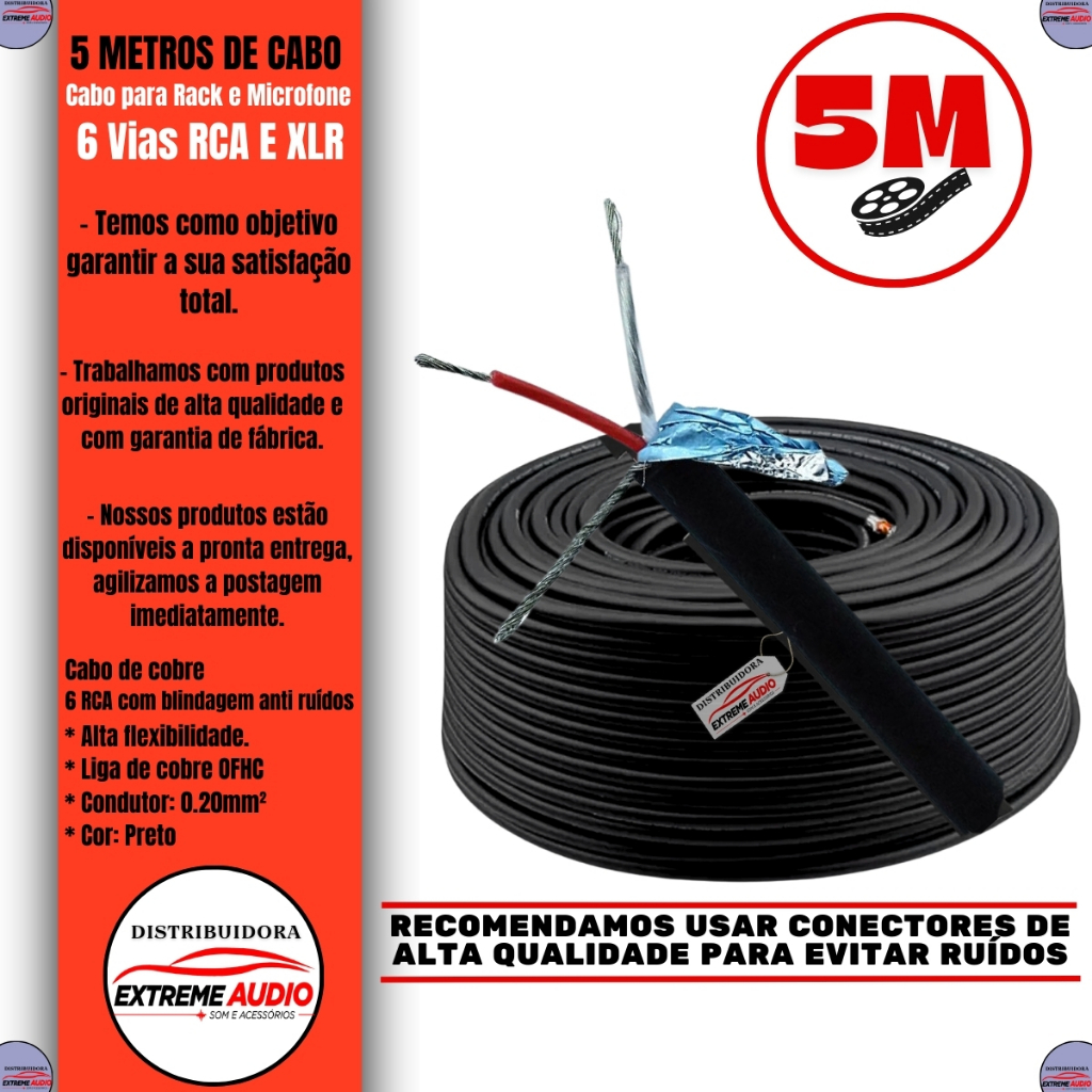 Multicabo para ligacoes/interligacoes estereo fabricado em liga de Cobre OFHC (Isento de Oxigenio) bitola de 0,20mm2/24 AWG, estanhado, com veias numeradas. CONSTRUCAO: - Condutor: Condutor em cobre estanhado OFHC 24 AWG. - Isolamento: Isolado em Polietileno termoplastico resistente a alta temperatura e baixa retracao durante a solda. - Blindagem: Fita de aluminio + fio de cobre (dreno) 0,20mm2 - Cobertura: Cobertura em PVC emborrachado e flexivel. - Veias numeradas na cor azul, e capa preta. - 01 fio positivo, 01 fio negativo, 01 fio malha/ CARACTERISTICAS: - Gravacao alfanumerica das vias a cada 5cm - Vem com sistema rip-cord que facilita a abertura da capa. - Alta flexibilidade. - Liga de cobre OFHC - Condutor: 0.20mm2 - Isolamento: Polietileno - Cor: Preto Disponiveis nas configuracoes: 6Vias (espaguetes) Vias numeradas para identificacao Cobertura de PVC emborrachado, mais flexivel e resistente Veias revestidas de PE de baixa densidade Bitola: 24 AWG (0,20mm) Compatibilidades: - Meduza de Microfone e acessorios - Cabos de Audio CONTEUDO DA EMBALAGEM: - 5 Metros de Multicabo 06 vias Importante: - Cabo vendido por metragem - Valor referente a 5 metros - Imagens meramente ilustrativas - Garantia de fabrica com duracao de 12 meses - Recomendamos que a instalacao seja feita por um profissional, e nao nos responsabilizamos pelo mau uso do produto.