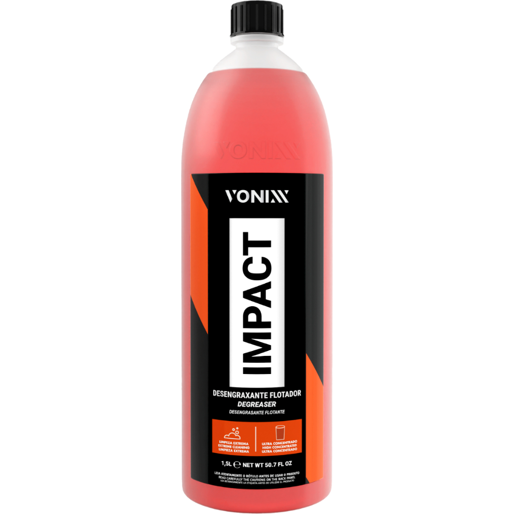 IMPACT 1,5L - MULTILIMPADOR PARA LIMPEZA PESADA DESCRIÇÃO: Impact é um limpador universal, ecologicamente correto e não-corrosivo, desenvolvido para limpezas difíceis de superfícies diversas. Sua fórmula exclusiva promove alta eficácia na eliminação de manchas produzidas por impacto de insetos, gordura e encardidos. DILUIÇÃO: 1:1 – Para Superfícies incrustadas 1:10 – Para Limpeza pesada 1:30 – Para Média intensidade 1:50 – Para Limpeza de manutenção Até 1:60 – Para Extratoras Até 1:20 – Para Tornadores MODO DE USAR: Rodas, Motores, Chassis, Pneus, Pinturas: 1. Dilua o produto na proporção conforme indicação de uso 2. Com o auxílio de um pulverizador pulverize a solução na área a ser limpa 3. Utilize um pincel, escova macia ou aplicador de espuma e realize movimentos até observar o desprendimento da sujeira 4. Enxágue cuidadosamente a superfície com o auxílio de uma lavadora de alta pressão Carpetes, Estofados e Tecidos: 1. Dilua o produto na proporção conforme indicação de uso 2. Com o auxílio de um pulverizador pulverize a solução na área a ser limpa 3. Utilize uma escova macia ou um aplicador de espuma e realize movimentos circulares até observar o desprendimento da sujeira 4. Utilize um aspirador específico para remoção de água e aspire toda a sujeira 6. Aguarde secar completamente