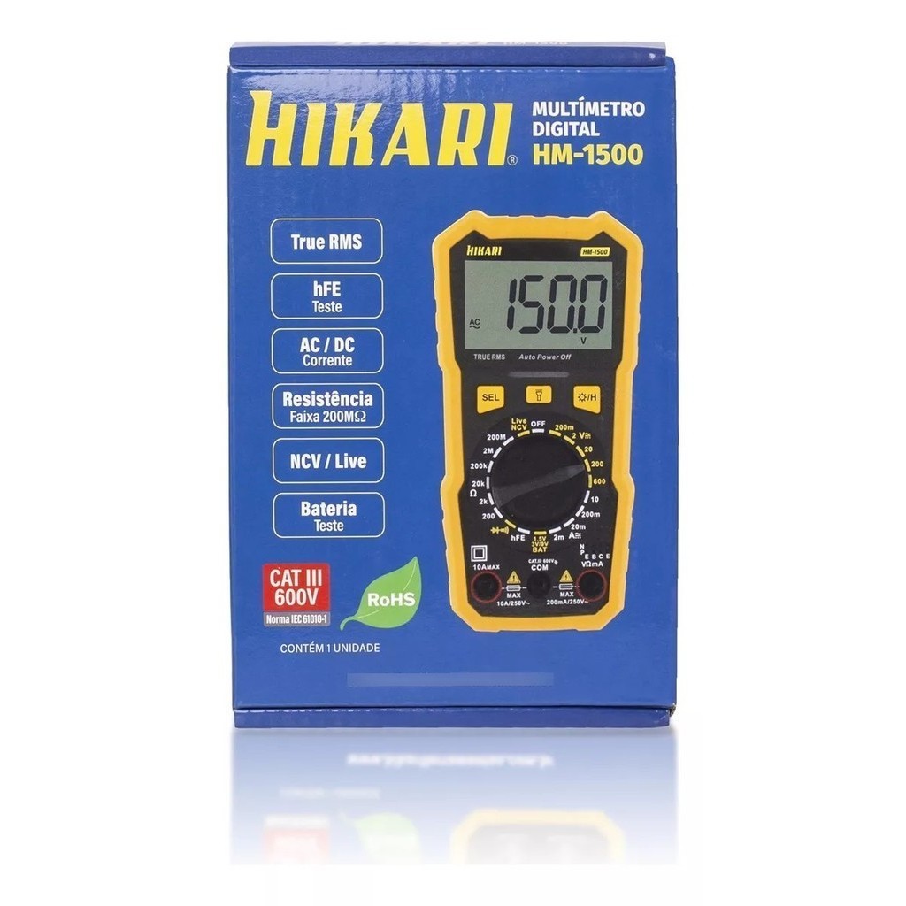 Multímetro Digital Hikari HM-1500 True RMS, NCV, hFE AC/DC 600V Emborrachado