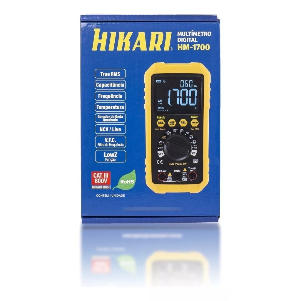 Multímetro Digital Hikari HM-1700 True RMS, NCV, 600V, Capacitância, Display Grande Iluminado EBTN