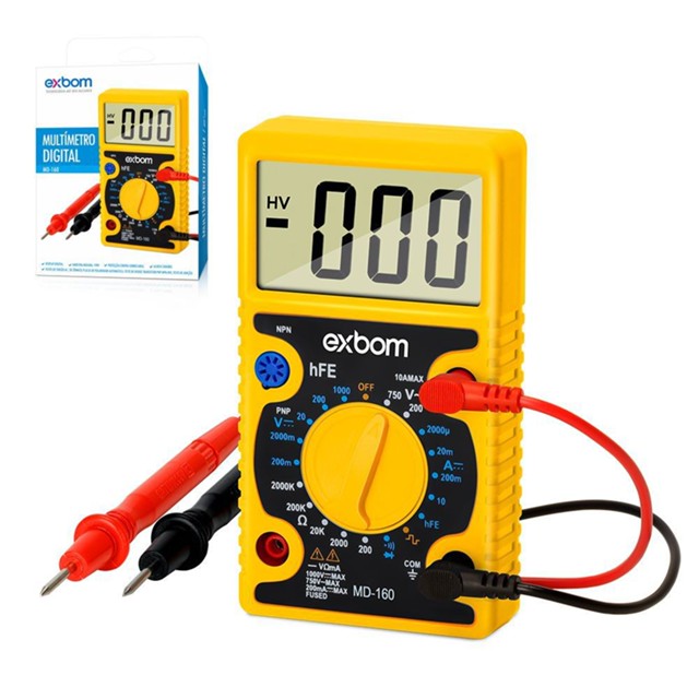 | Multímetro digital MD-160 DC/AC/Diodo/Transistor/com bateria/bipe este produto | R$ 25,50 | — | 4.9/5 | 388 |