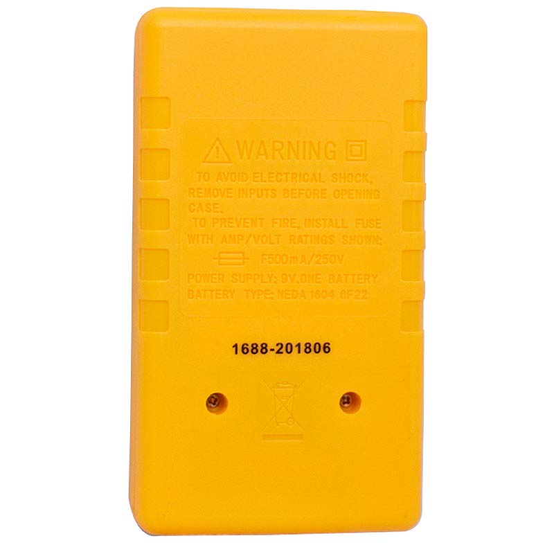 Multímetro Digital Portátil 8522 BRASFORT Medições de tensão contínua e alternada, corrente contínua, resistor, transistores e diodos. Ideal para laboratórios, oficinas, bricolagem e uso doméstico. DADOS TÉCNICOS: Multímetro com visor em cristal líquido (LCD), 0,5 pol de altura e 3 1/2 dígitos. Tensão contínua (DCV): 200mV, 2.000mV, 20V, 200V e 1.000V. Tensão alternada (ACV): 200V e 750V. Corrente contínua (DCmA): 200µ, 2.000µa, 20mA, 200mA e 10ª. Resistor (ohm): 200ohm, 2.000O, 20kohm, 200kohm e 2.000kohm. Transistor (hFE): NPN/PNP. Peso: 300 gr. ITENS INCLUSOS: Par de pontas de prova. Multímetro. Ref: 8522 Marca: Brasfort *Imagens meramente ilustrativas.