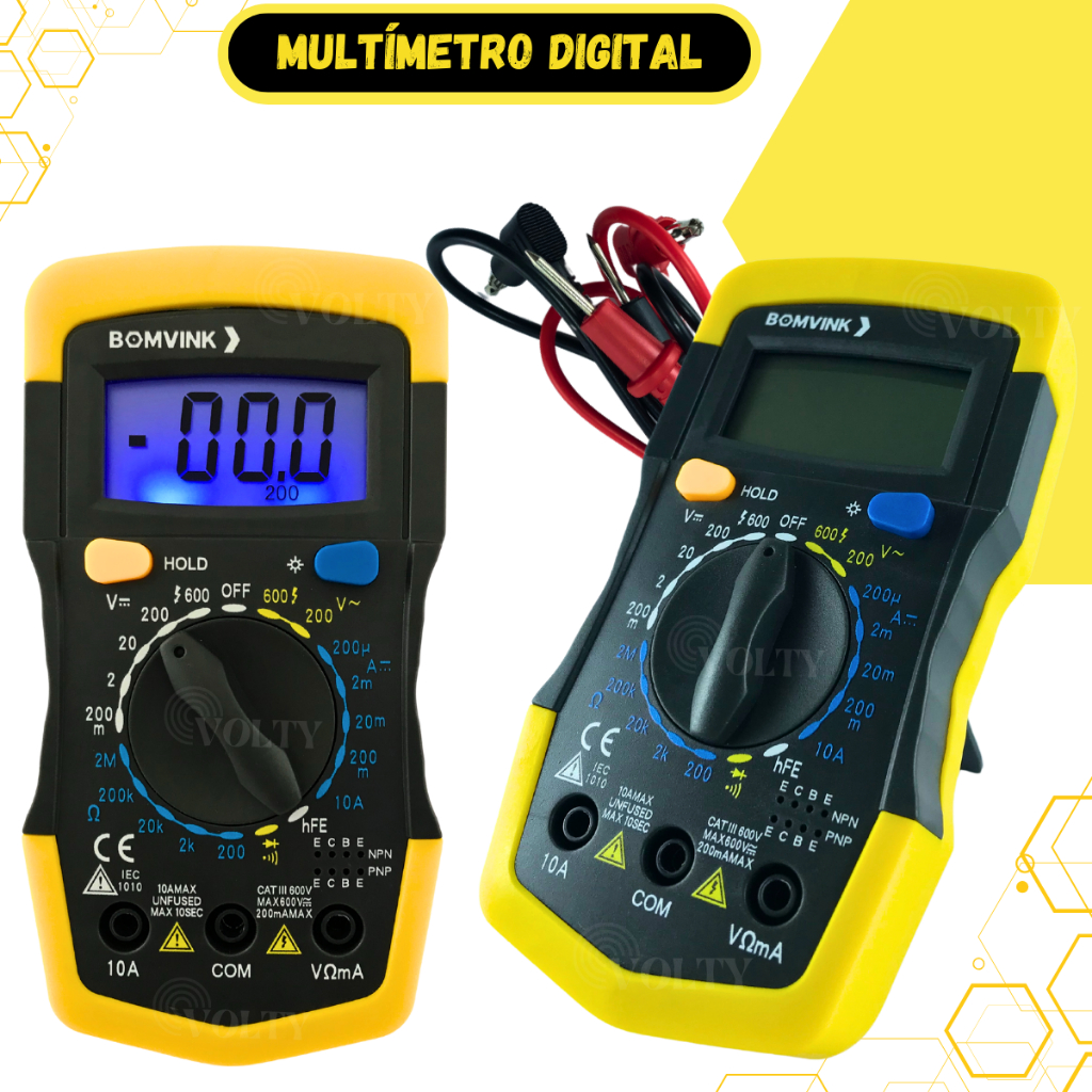 O Multímetro Digital Portátil é a ferramenta essencial para eletricistas, técnicos e entusiastas que precisam de medições precisas e confiáveis no dia a dia. Com um design compacto e fácil de usar, ele realiza medições de tensão, corrente, resistência e muito mais, sendo ideal para diagnósticos rápidos e manutenção de circuitos elétricos e eletrônicos. Seja para uso profissional ou doméstico, esse multímetro oferece a praticidade e precisão que você procura! Principais Características: Medições Precisas e Variadas: Realiza medições de tensão AC/DC, corrente, resistência, continuidade e teste de diodos, sendo uma ferramenta completa para qualquer situação. Tela Digital de Alta Visibilidade: Display LCD nítido, com dígitos grandes e retro iluminação, ideal para visualização em ambientes com pouca luz. Função de Auto Desligamento: Economiza a bateria com a função de desligamento automático, aumentando a vida útil do aparelho. Compacto e Portátil: Design leve e ergonômico que cabe na palma da mão, facilitando o transporte e uso em diferentes ambientes. Segurança e Proteção: Equipado com sistema de proteção contra sobrecargas para garantir segurança durante o uso. Fácil de Usar: Interface simples e intuitiva, adequada tanto para iniciantes quanto para profissionais experientes. Por que escolher nosso Multímetro Digital? Qualidade e Precisão em Cada Medição: Ferramenta confiável para diagnósticos rápidos e eficientes. Durabilidade e Segurança: Feito com materiais de alta qualidade, projetado para resistir ao uso diário e garantir medições seguras. Custo-Benefício Excepcional: Perfeito para quem busca uma solução completa a um preço acessível. Ideal para Uso Profissional e Doméstico: Atende a diferentes necessidades com versatilidade e praticidade. Garanta já o seu Multímetro Digital Portátil e conte com uma ferramenta indispensável para medições precisas em qualquer situação. Não perca a oportunidade de ter em mãos uma solução prática e eficiente para seus projetos e manutenções elétricas! Compre agora e facilite seu dia a dia com uma ferramenta de qualidade!