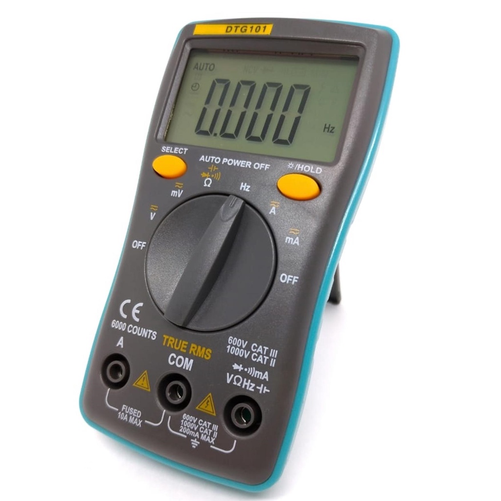 Multímetro Digital Profissional True Rms Modelo DTG-101 Características: - Acompanha Bolsa de Transporte - Acompanha Par de Ponta de Prova Reforçada - Tamanho portátil portátil, fácil de transportar - Multímetro digital universal, extremamente útil e versátil - Iluminação no Display - Forte capacidade anti-interferência - Desligar automaticamente após 15 minutos de inatividade - Usado para medir corrente, resistência, continuidade, diodo, Capacitância, Frequência, Voltagem. Especificações: - Marca: GC - Modelo: DTG101 - Material: ABS - Tipo de bateria: 2 x bateria 1.5V AAA (Inclusas) - Taxa de atualização: 3 vezes / segundo - LCD: 6000 Contagens - Mudança: auto / manual - Temperatura de funcionamento: 0 a 40 graus - Temperatura de armazenamento: -20 a 60 graus - True Rms: sim - Diodo: sim - Continuidade: Sim - Data Hold - Iluminação no Display - Auto Desligamento após 15 Minutos de Inatividade Escalas: - Voltagem DC: 1000V - Voltagem AC: 750V - Corrente (Amperagem) DC: 10A - Corrente (Amperagem) AC: 10A - Resistência: 60M - Capacitância: 10MF - Frequência: 10MHZ - Teste de Diodo Perguntas Frequentes: Tem Estoque? - Sim, todos os nossos produtos anunciados, possuem estoque para o envio imediato. Envio Imediato? - Todos os pedidos que chegam até as 15:00hs, são postados no mesmo dia. Envio com Nota Fiscal? - Sim, todos os nossos pedidos são enviados com nota fiscal, emitida automaticamente com os dados do seu cadastro no site, não sendo possível a alteração desses dados após a compra, pois é vinculado à etiqueta de envio. Emite Nota Fiscal para CNPJ? - Sim, desde que esses dados, sejam os do seu cadastro no site, não sendo possível a alteração após a compra. Possui Garantia: - Sim, todos os produtos anunciados por nós, possuem garantia de fábrica.