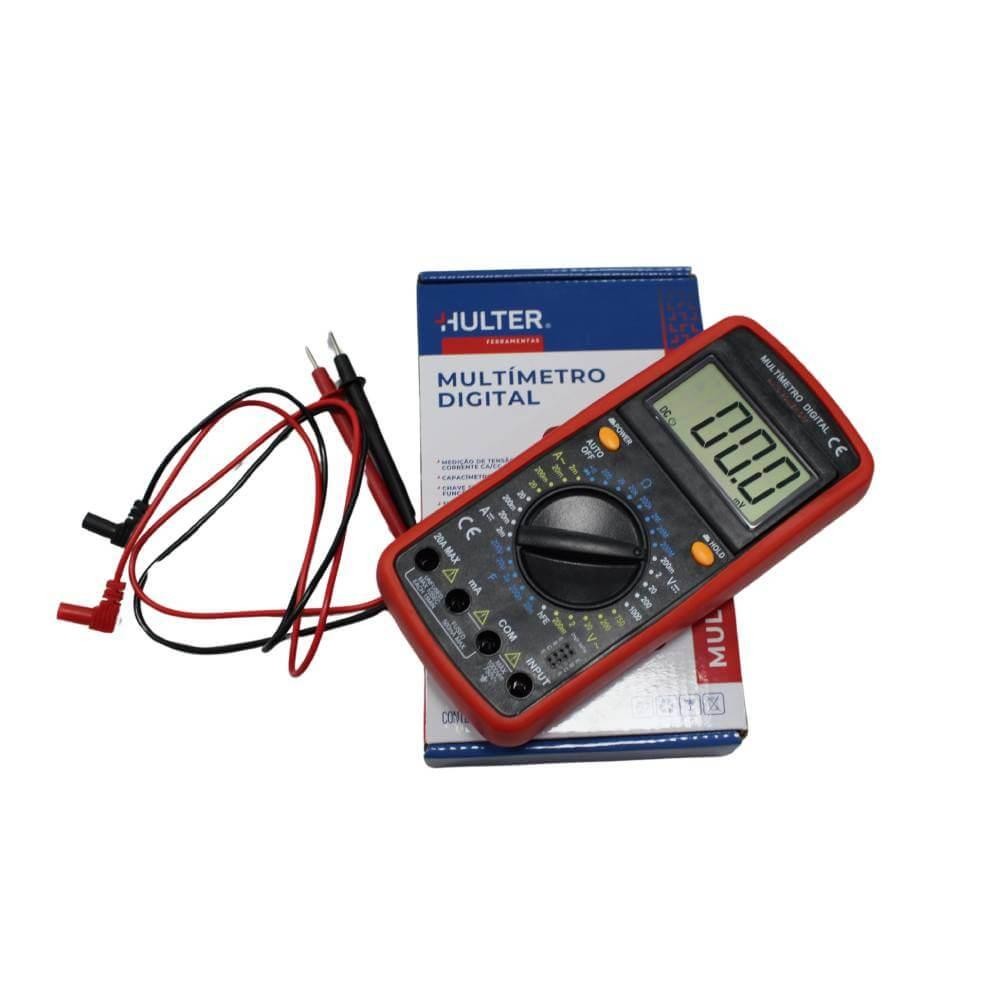 Multímetro e Capacímetro Digital Portátil Hulter HT59205F O Multímetro e Capacímetro Digital Portátil Hulter HT59205F é a ferramenta ideal para quem precisa de precisão e versatilidade em medições elétricas. Com a capacidade de medir tensão e corrente em CA e CC, este instrumento atende diversas necessidades, seja para hobby ou manutenção em eletrônica. Além disso, o HT59205F permite testar diodos, transistores, continuidade e resistência, tornando-se um aliado indispensável para profissionais e entusiastas da área. Equipado com uma chave seletora de função de 32 posições, o multímetro oferece uma ampla gama de medições, permitindo que você escolha facilmente a configuração ideal para cada tarefa. Sua função hold mantém a leitura exibida na tela, facilitando a análise dos resultados sem a necessidade de interromper o trabalho. O display de 3/4 dígitos é ajustável em ângulo, garantindo melhor visualização e conforto durante o uso, mesmo em ambientes com pouca iluminação.