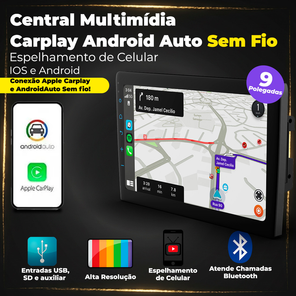Kit Central Multimídia Carplay Android Auto Sem Fio 9 Polegadas Strada e Fiorino 2021 em diante + Moldura Completa + Câmera de Ré -Compatível com: - Fiat Strada 2021 em diante - Fiat Fiorino 2021 em diante Multimídia Automotivo RS-7009BR Tela 9 Polegadas Carplay Android Auto Sem fio Lançamento - Roadstar O Roadstar RS-7009BR é um multimídia automotivo MP5 de 9 polegadas, desenvolvido para oferecer mais conectividade, entretenimento e praticidade ao seu veículo. Com design moderno e tela IPS capacitiva, proporciona ótima visualização e resposta ao toque. Compatível com Android Auto e Apple CarPlay sem fio, permite espelhamento direto do smartphone, facilitando o acesso a aplicativos, músicas, mapas e chamadas com total segurança. Possui Bluetooth com A2DP, possibilitando streaming de áudio e download da agenda telefônica. Conta com sintonizador de rádio FM, entradas USB (tipo C e USB-C para carregamento), entrada auxiliar (AUX) e leitor para mídias digitais. Seu sistema de áudio oferece 4 canais de 50 watts, além de 6 saídas RCA, garantindo excelente qualidade sonora e ampla possibilidade de expansão. O equipamento dispõe ainda de entrada para câmera AHD 720P, entrada e saída de vídeo, saída de vídeo para monitor de encosto, 2 saídas de áudio e 2 de vídeo, além de equalizador com ajustes de graves, agudos e gêneros musicais. Compatível com comando de volante e conector ISO, facilita a instalação e integração com o veículo. Principais características: - Tela IPS capacitiva de 9” - Apple CarPlay e Android Auto sem fio - Espelhamento iOS e Android - Bluetooth com A2DP e agenda telefônica - Rádio FM - Potência: 4 x 50W - 6 saídas RCA - Entrada para câmera AHD 720P - USB, USB-C (carregamento) e AUX - Entrada e saída de vídeo - Saída para monitor de encosto - Equalizador de áudio - Comando de volante - Conector ISO Ideal para quem busca tecnologia, conectividade e qualidade de som em um único multimídia automotivo. Compatibilidade moldura: -Compatível com: - Fiat Strada 2021 em diante - Fiat Fiorino 2021 em diante Mantenha a originalidade e qualidade no acabamento de seu veículo. A Moldura é feita sob medida para se encaixar perfeitamente no painel do seu veículo, destacando sua estética de fábrica através de sua cor. Este acessório possui o acabamento perfeito e ampla resistência que garante um visual moderno no interior do seu carro. A Moldura de rádio ou contra frente é moldada exatamente no formato do painel do carro, além de garantir perfeição no encaixe e nos acabamentos, não deixa que seu carro perca a originalidade. Especificações Técnicas: - Modelo: 9" - Origem: Importado - Cor: Preto - Fabricada em ABS - Excelente Acabamento: Não é Necessário Realizar Adaptações - Alta Qualidade e Resistência - Fácil Instalação Acessórios Compatíveis para Instalação - Chicotes: EXC 012 EXC FT-065 (96541) - Antenas: EXC 015 (3629) Pesos e medidas (aproximados) Medidas da moldura: Montagem original Medidas internas da moldura para montagem: 9'' Medidas da embalagem: 11 x 23 x 44 cm (altura x largura x comprimento) Peso bruto: 0,32 Kg Conteúdo da Embalagem: - Central Multimídia 9" Polegadas Carplay Android Auto Sem Fio; - Câmera de Ré; - Chicote de Ligação; - Manual Importante - Garantia; - Pedidos aprovados até 12h00 de segunda a sexta será enviada no mesmo dia; - Enviamos em até 24h úteis; - Imagens meramente ilustrativas; - A cor do produto pode variar de acordo com a tela do seu smartphone ou computador; - Utilize o campo de "Perguntas e respostas" e esclareça suas dúvidas com nosso suporte técnico.