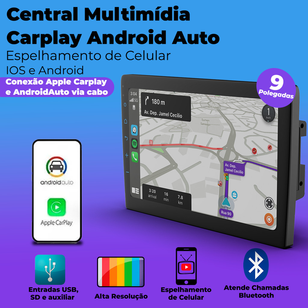 Centra Multimídia 9 Polegadas HB20 HB20S HB20X Com Carplay Android Auto Bluetooth Com Entrada Câmera de Ré Compatibilidade - HB20 G1 2012 até 2019 - HB20S 2012 até 2019 - HB20X 2012 até 2019 # Auto Equip # Central Multimidia Carplay Android Auto MP5 Slim 9 polegadas USB/Rádio/Bluetooth RS908BR Prime - Roadstar A central multimídia Mp5 é um acessório que vem sendo cada vez mais procurado pelos motoristas e passageiros, foi desenvolvido sobre alto padrão de tecnologia e qualidade, ideal para quem busca um ambiente mais moderno no seu veículo. O multimídia conta com diversos recursos, possui entradas Traseiras para ré 2 USB´S, 1 video auxiliar, 1 camera de ré, 1 auxiliar e 1 microfone Externo. O Carplay ainda conta com sistema de espelhamento via cabo USB você pode espelhar seu celular com sistema Android ou IOS. Utilizando a conexão Bluetooth você poderá curtir suas mídias de audio ou vídeo através da entrada USB, você ainda pode atender, ou efetuar, suas chamadas telefônicas e também reproduzir suas playlist de seu celular direto na RS-908BR Plus. Desenvolvida pela Roadstar, a multimídia MP5 possui botões com 7 cores de iluminação e tela de 9" full touch com uma tela Capacitiva, e pode ser ligada com total praticidade nas entradas RCA. Além de entreterimentos, o multimídia têm como característica auxiliar na hora estacionar com muito mais segurança. Possui ainda para sua praticidade e Comando de Volante com o Sistema Resistivo,(consulte compatibilidade, pois alguns modelos de carro necessitam de interface adquirida a parte). Tela de 9" Full Touch A multimídia MP5 RS-908BR Prime CarPlay possui botões com 7 cores de iluminação e tela de 9" full touch com uma interface intuitiva e amigável. Perfil Slim Conectividade Com a multimidia RS-908BR Prime CarPlay você poderá curtir suas mídias de audio, ou vídeo, através da entrada USB. Através da conexão Bluetooth você pode atender, ou efetuar, suas chamadas telefônicas e também reproduzir suas playlists de seu celular direto na RS-908BR Prime CarPlay. Espelhamento Você pode espelhar de uma maneira simples seu celular com sistema Android ou IOS diretamente na tela da RS-908BR Prime CarPlay através do cabo USB. E usufruir todos os benefícios do espelhamento CarPlay em seu Iphone, ou Android Auto para os celualres Android. Também poderá fazer o espelhamento tradicional nesta multimídia. Obs.(No espelhamento tradicional, os aplicativos de vídeo streaming que requerem assinatura (NetFlix, Amazon Prime, Youtube Premium, etc..), os vídeos não são reproduzidos no espelhamento devidos a restrições impostas nas operadoras de streaming) Informações Técnicas - Painel: Fixo com botões em 7 cores de iluminação (azul, azul claro, branco, amarelo, vermelho, roxo e verde) - Tela: Full Touch 9" Capacitiva - Rádio: FM com memória para 18 estações FM - Conexões: Bluetooth - Entradas traseiras: 2 USB (USB e USB-C), 1 Vídeo Auxiliar, 1 Câmera de Ré, 1 Auxiliar e 1 Microfone Externo - Saídas: 2 RCA (Audio) e 2 RCA (Vídeo) - Tipo de Conector: 16 vias - Comando de Volante: SIM (em alguns modelos de carros poderá ser necessário o uso de interface) - Potência: 4 Canais de 50 Watts RMS Moldura de Painel 2 Din Multimídia MP5 9" Padrão Chinês Hyundai HB20 / HB20S / HB20X 2012 a 2019 – Preta Fiamon A Moldura Multimídia Fiamon foi desenvolvida especialmente para os modelos Hyundai HB20 G1 (2012 a 2019), garantindo encaixe perfeito e preservando a estética original do veículo. Principais Características: - Compatibilidade Total: Indicada para HB20, HB20S e HB20X (2012 a 2019). - Encaixe Preciso: Moldada sob medida para manter a harmonia com o painel original. - Design Moderno: Acabamento preto que valoriza o interior do veículo. - Instalação Simplificada: Proporciona agilidade e praticidade na instalação do multimídia. Especificações Técnicas: - Marca: Fiamon - Modelo: 6037 - Material: Plástico ABS resistente - Cor: Preta (Padrão Chinês) - Tamanho: 9 polegadas Aplicação: - HB20 G1 2012 até 2019 - HB20S 2012 até 2019 - HB20X 2012 até 2019 Conteúdo da Embalagem: - 01 Multimídia MP5 de 9" RS-908BR Prime CarPlay - 01 Microfone Externo - 02 Extensões USB - Chicotes de Ligação - Manual e Certificado de Garantia - 01 Moldura Multimidia 9" HB20 G1 12/19 Preta (Chines) - Fiamon Importante - Garantia de 03 meses; - Pedidos aprovados até 12h00 de segunda a sexta será enviada no mesmo dia; - Enviamos em até 24h úteis;