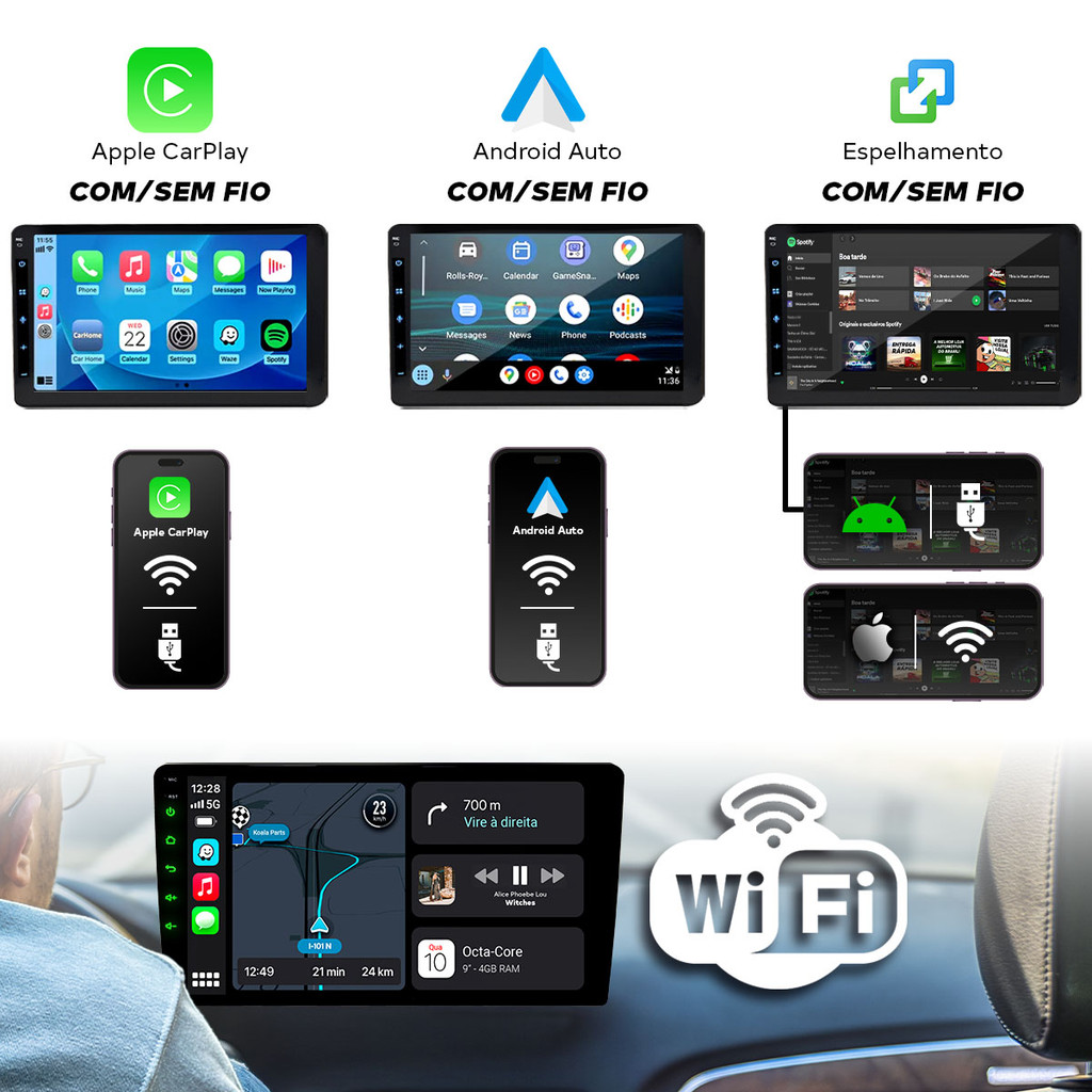 Multimídia Android 9 Pol Quadcore 2GB QLED 2 Din C/ Android Auto Carplay Sem Fio
