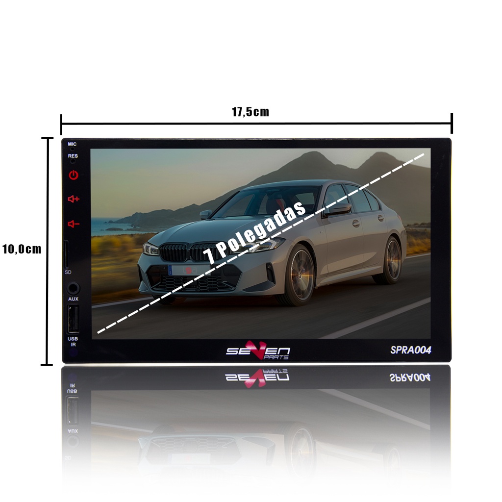 A Central Multimídia é o que falta para completar seu veículo. Player 2DIN com tela touch screen capacitiva widescreen de 7 polegadas. E o seu som automotivo de qualidade está garantido com este aparelho. O Player ainda conta com entrada para câmera de ré. Ideal pra curtir suas músicas do jeito que preferir. Com o MP5 player automotivo você também pode espelhar a tela do seu Android/iOS direto no visor, usando apenas um cabo USB. A Central Multimídia universal reproduz arquivos MP5, MP4, MP3, WMA, JPG e tem suporte compatível com cartão SD e uma entrada auxiliar frontal. Além disso o aparelho possui conexão bluetooth que compatível com reprodução de músicas e recebimento de chamadas telefônicas. Conta com busca automática por estações e tem memória que guarda as estações de rádio FM. A Central Multimídia MP5 Universal além de proporcionar conforto e funcionalidade também agrega valor ao seu veículo, trazendo muita praticidade para quem dirige e quem o acompanha! Características do produto: • Tela 7" Touch Screen • Conexão USB 2.0 • Formato de Vídeo 1080P Full HD • Espelhamento Celular IOS/Android • 4x50 Watts • Equalizador • Conexão RCA (Áudio/Vídeo) • Entrada Câmera de Ré • Conexão Bluetooth • Controle Remoto Multinações • Personalização do logo de inicialização • Personalização de iluminação dos botões • Conectividade com controle de som no volante • Car Player Conteúdo da Embalagem: • 1 Multimídia SPRA004 • 2 Chicotes • Manual • Controle Remoto • Suporte • Câmera de Ré IMPORTANTE: A Loja do Som e Acessórios recomenda que a instalação seja feita por profissional especializado e não se responsabiliza pelo mau uso do produto. [DÚVIDAS FREQUENTES] • Os produtos são novos? R: Todos as nossas mercadorias são novas e com garantia. • O conteúdo da embalagem é conforme o especificado pela embalagem do produto? R: Não, o conteúdo da embalagem é conforme o que está prescrito na descrição do anuncio. • Como funciona a garantia? R: Nossas mercadorias contêm uma etiqueta de garantia para nosso controle interno, com essa etiqueta verificamos se o produto é nosso mesmo, portanto NÃO tire a etiqueta do produto. • O produto está disponível a pronta entrega? R: Sim, todos as nossas mercadorias estão em nosso estoque preparados para serem embalados e enviados para você! [INFORMAÇÕES IMPORTANTES] • Ao receber a mercadoria, recomendamos que o comprador confira se está tudo correto. • Garantia de 6 meses/ Valor da peça