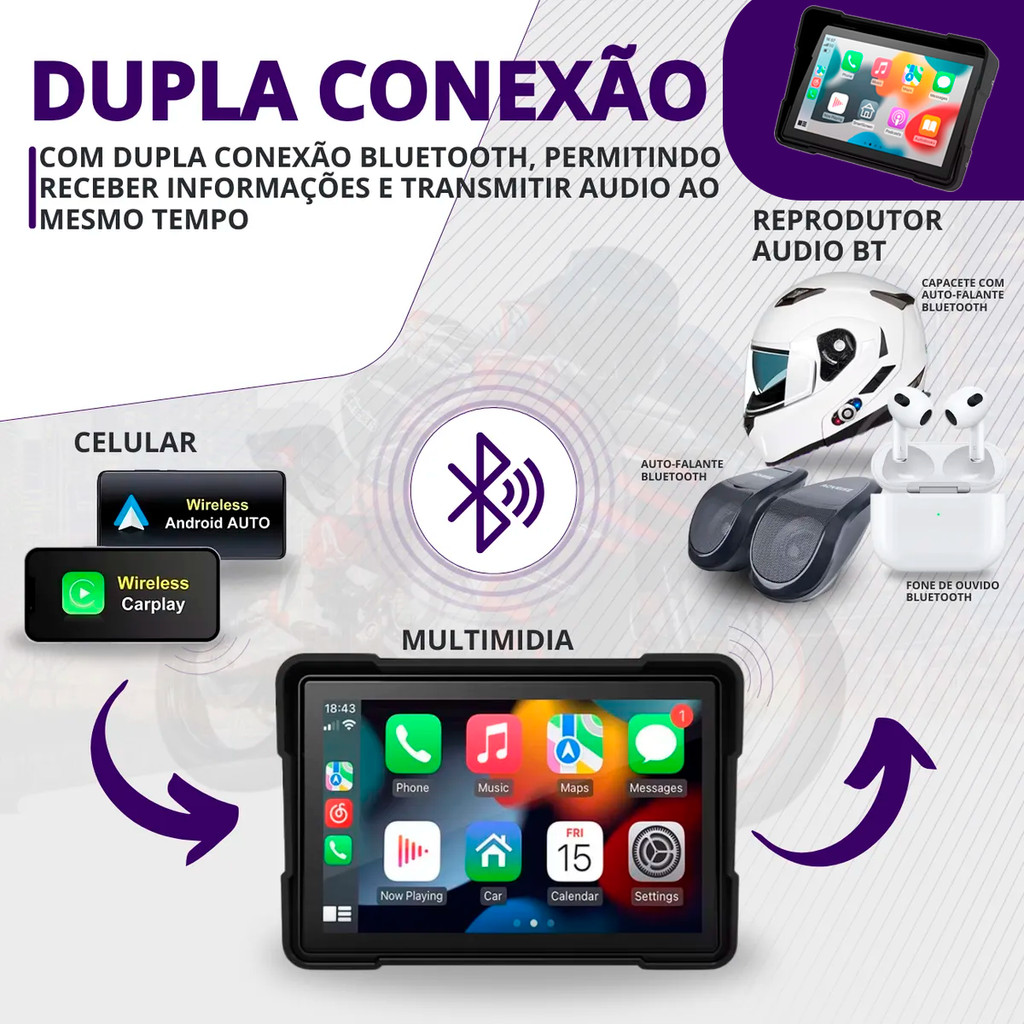 Multimídia CG 160 Titan Fan Cargo Start 5 Polegadas Carplay Android Auto Sem Fio Aplicativos Gps Bluetooth Prova D'água