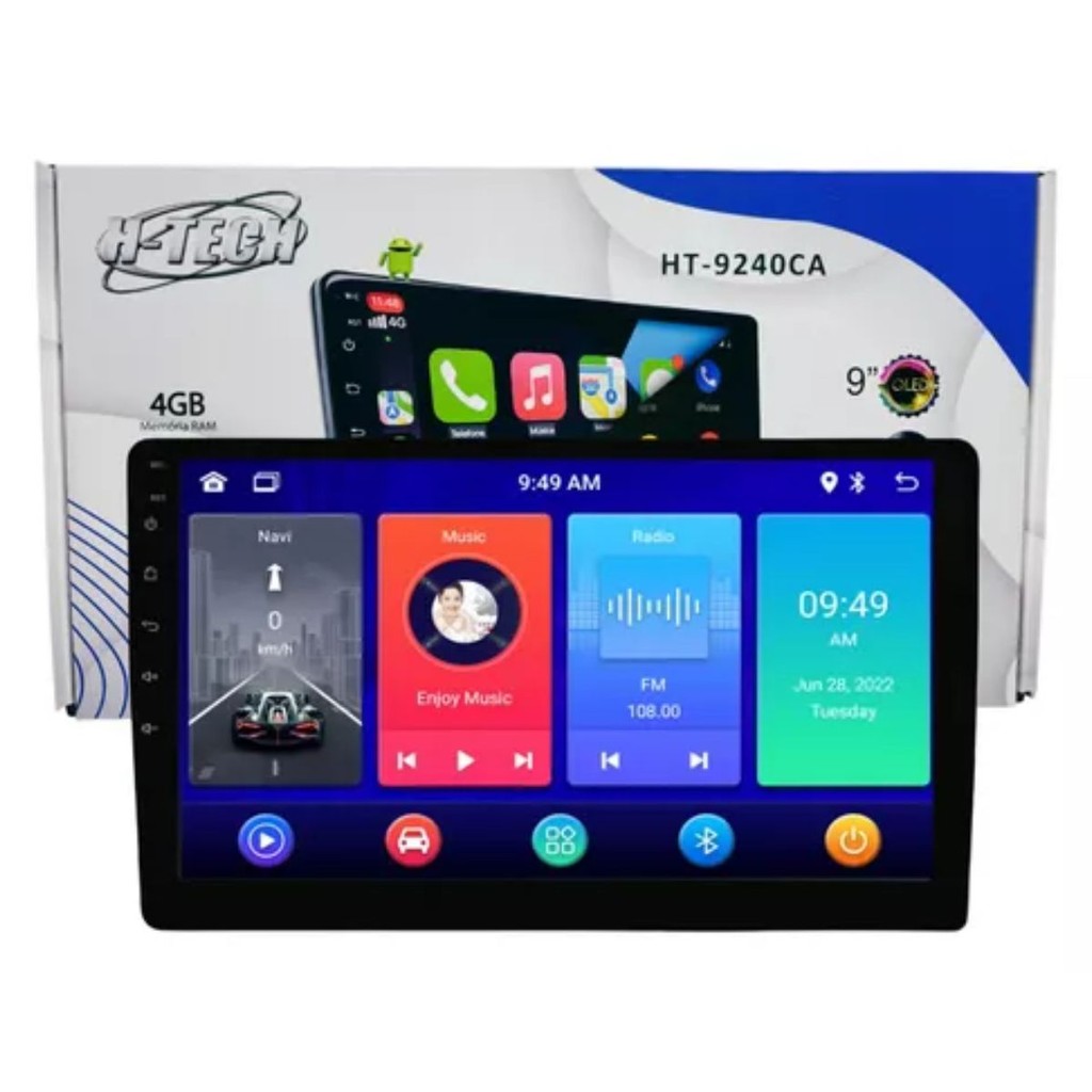 A H-TECH oferece multimídias automotivas com tela touchscreen, Bluetooth, USB e rádio FM. Muitos modelos Android permitem instalar apps como Waze e Spotify, além de espelhar o celular. Há opções básicas (MP5) e avançadas com mais recursos e melhor desempenho. Ideal para entretenimento e conectividade no carro. Central Multimídia 7 Pol. H Tech HT-7240 4+64GB Q-Led - Tela 9" de vidro 2DIN Painel: IPS - Processador Quadcore - Potência: 4X60W RMS - GPS/WI-FI Integrado - App compatível com espelhamento, CarPlay e Android Auto conectividade com ou sem fio. - 2 Fios SWC para comando de volante (Grava até 10 funções) - 2 Entradas USB - Bluetooth: Atende ligações e reproduz música. - 7 opções de cores de painel. - 25 opções de layout - 6 opções de menu - 1 saída de Subwoofer - 1 Entrada câmera frontal - 1 Entrada para microfone - 1 Entrada de áudio e vídeo - 1 Entrada para câmera de ré - Memória RAM: 4 GB - Memória interna: 64 GB - Dimensões aproximadas (CxLxA): 23x20x9 - Peso: 830g