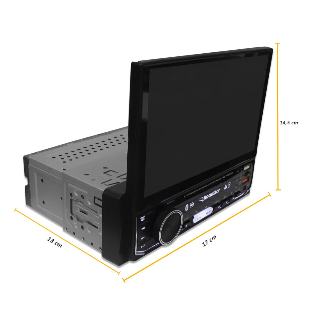 Tela de 7 Full Touch A multimídia MP5 1DIN RS-7100BR Pro Line possui botões com 7 cores de iluminação e tela de 7 full touch com uma interface intuitiva e amigável. Espelhamento Você pode espelhar seu celular com sistema Android ou IOS* diretamente na tela da RS-7100BR Pro Line através do cabo USB. Você poderá fazer o espelhamento da tela de seu celular através do MirrorLink, ou utilizar toda a praticidade do Carplay (smartphones IOS) e ANDROID AUTO. Obs.(No espelhamento tradicional, os aplicativos de vídeo streaming que requerem assinatura (NetFlix, Amazon Prime, Youtube Premium, etc..), os vídeos não são reproduzidos no espelhamento devidos a restrições impostas nas operadoras de streaming). Conectividade Com a multimidia RS-7100BR Pro Line você poderá curtir suas mídias de audio ou vídeo através da entrada USB ou de cartão micro SD. Através da conexão Bluetooth você pode atender, ou efetuar, suas chamadas telefônicas e também reproduzir suas playlists de seu celular direto na RS-7100BR Pro Line. Informações Técnicas: - Painel: 1 Din Fixo com botões em 7 cores de iluminação (azul, azul claro, branco, amarelo, vermelho, roxo e verde) - Tela: Full Touch 7 Capacitiva - Rádio: FM (76-108 Mhz) com memória para 18 estações FM - Espelhamento: Mirrolink, Carplay e Android Auto por cabo USB - Conexões: Bluetooth 5.0 - Entradas frontais: Micro SD, Auxiliar e 2 USB´S (1 Charger e 1 Player) - Entradas traseiras: 1 Vídeo Auxiliar, 1 Câmera de Ré, 1 Auxiliar, 1 USB-C (charger) e 1 Microfone Externo - Saídas: 2 RCA (Audio) e 2 RCA (Vídeo) - Tipo de Conector: ISO - Controle Remoto: SIM (Físico e por aplicativo para Android) - Comando de Volante: SIM - Potência: 4 Canais de 50 Watts RMS Dimensoes Largura: 22cm Altura: 16,5cm Comprimento: 17,5cm Peso: 1,120Kg