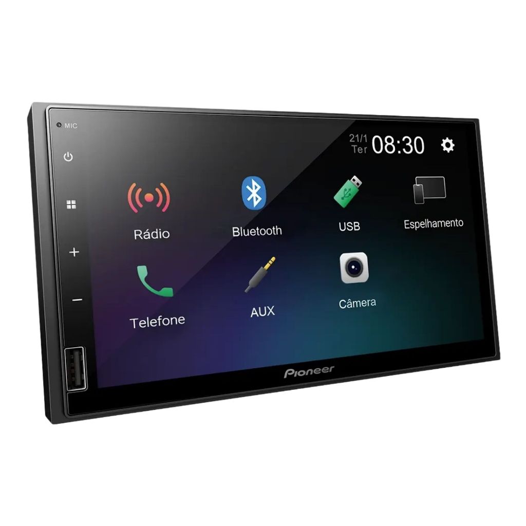 Multimidia Pioneer DMH145BR 7Pol BT Espelhamento Android USB A Pioneer DMH-145BR traz de volta o clássico dos golfinhos com tecnologia moderna. Sua tela touchscreen capacitiva de 7" WSVGA (1024×600) oferece excelente nitidez, cores vibrantes e navegação rápida — ideal para vídeos, espelhamento Android e uso de apps. O sistema de áudio entrega alta qualidade com 4×23W RMS, equalizador de 13 bandas, Bass Boost, Loudness e controle de Subwoofer. O Bluetooth 5.2 garante chamadas hands-free claras e streaming estável. Prática, possui USB frontal para música, vídeos e carregamento, entrada AUX, entradas para duas câmeras, saída de vídeo para monitores traseiros e compatibilidade com comando de volante. O rádio FM permite salvar até 18 estações e oferece suporte amplo a formatos de áudio e vídeo — inclusive Full HD. A experiência pode ser personalizada com ajustes de imagem, papéis de parede e cinco cores de iluminação de botões. O chassi 2-DIN facilita a instalação e mantém o visual elegante no painel. A DMH-145BR combina nostalgia, conectividade e qualidade sonora, elevando a experiência ao dirigir com o padrão de excelência da Pioneer. - Especificações: Tela Design: • Tela touchscreen capacitiva de 7 polegadas com proporção 16:9 e resolução WSVGA 1024x600 — imagem nítida e responsiva. • Iluminação e papel de parede personalizáveis. Conectividade: • Bluetooth 5.2 para streaming de áudio e chamadas mãos-livres. • Espelhamento de smartphone Android via cabo (Autolink). USB frontal (1,5 A) para reprodução e carregamento. • Entrada AUX, entradas para câmera de ré e segunda câmera. • Saída de vídeo para monitor traseiro e suporte a comando no volante (SWC). Áudio: • Potência nominal: 4×23 W RMS. • Equalizador gráfico de 13 bandas, loudness, bass boost e controle de subwoofer. • 2 saídas RCA pré-amplificadas (2 V). Rádio FM: • Rádio FM com busca automática de estações (BSM), memória de até 18 estações e RDS. Outros: • Compatível com formatos de áudio e vídeo via USB (MP3, WMA, AAC, WAV, FLAC / vídeos como MKV, MP4 etc.). • Entrada para múltiplas câmeras e saída de vídeo para monitor traseiro. • Dimensões do chassi: 178 × 101 × 110 mm; frente: 170 × 98 × 2 mm. • Peso aproximado: 1 kg