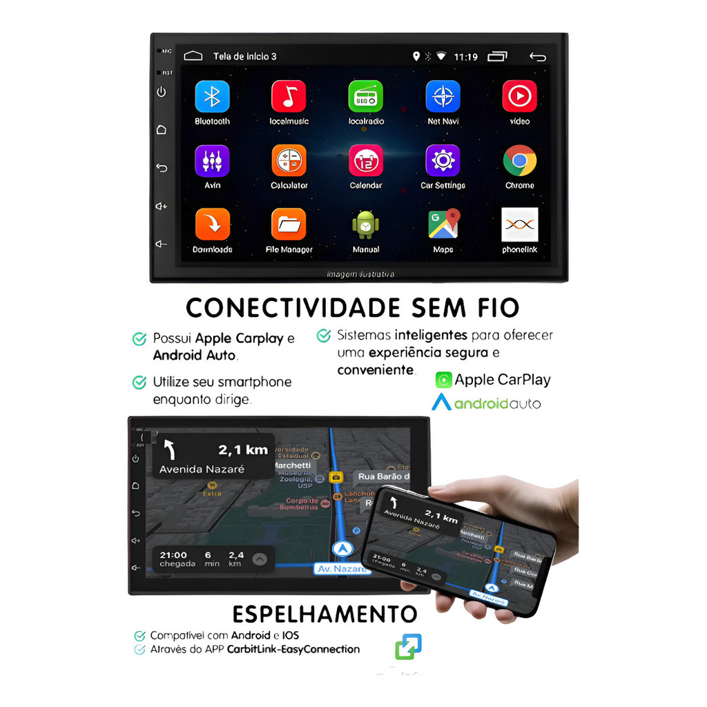 MULTIMÍDIA PREMIUM E-TECH 7 POLEGADAS 2G+32 ANDROID AUTO CARPLAY