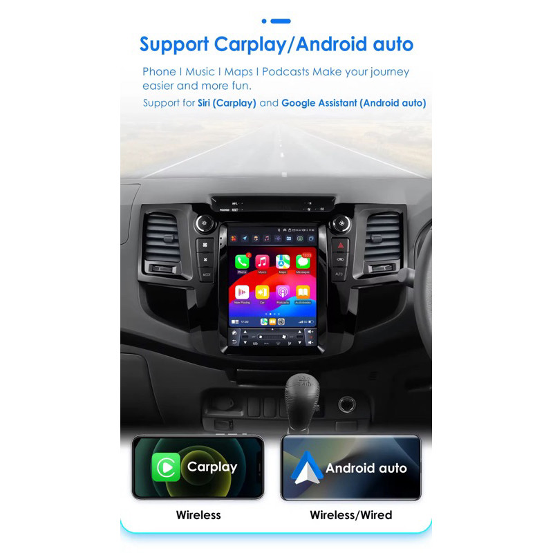 Central Multimidia Tesla Toyota Hilux/SW4 2007/2015 Versões Com Ar-Condicionado Digital. - Carplay - Android Auto - Wi Fi - GPS - USB - BLUETOOTH - RDS - ASP - DSP - Interface de Volante (Comandos) - Chicote de Ligação - Câmera de Ré Mantém Funcionando - Memória Interna 64GB - Rádio - Sem leitor de DVD - Tela HD 1280p - Espelhamento iOS e Android A Central Multimidia Tesla Android 13 é uma das centrais multimidias mais completas e atualizadas para a Toyota Hilux e Toyota SW4 existentes no mercado. Esta Central Multimídia além de ser embarcada com o sistema ANDROID 13 já possui vários aplicativos, tais como o WAZE, SPOTIFY, YOUTUBE e com a opção de poder instalar outros aplicativos direto da play store! Já vem também com espelhamento para Android e iOS. Com uma incrível tela vertical de 9.7 polegadas, que permite que você veja cada detalhe de seus vídeos e fotos. Você poderá fazer e receber chamadas, escutar músicas, tornando suas viagens superagradáveis. Com a interatividade do GPS você poderá fazer uma navegação completa nos seus trajetos e obter uma experiência fantástica. Confira mais detalhes sobre este produto: - Mantém todas as funções originais do veículo - Comandos do ar ficam direto na tela da central) - WI-FI (Roteia a Internet do seu celular na central, ou conecte-se a qualquer ponto de acesso WI-FI) - Áudio Surround Digital e amplificador interno - Entradas RCA áudio e vídeo / Subwoofer / Digital 5.1 - Rádio FM - Tela antirrefletiva Ultra HD - Alta resistência do desgaste do Touch - Equalizador + DSP de 24 bandas, saída RCA Stereo e saída SUB, ganho e frequência. - Processador Octacore 2.0GHZ - Memória 4 GB Ram - Memória Interno 64 GB Compatibilidade do Produto - Toyota Hilux 2007 a 2015 (modelos com ar condicionado digital) - Toyota SW4 2007 a 2015 (modelos com ar condicionado digital) Especificações CD/DVD Player: - Sem leitor de DVD. Display: - Alta Resolução 2.5D (IPS) - Tela de 9.7 polegadas - Touch Screen GPS com navegador iGO : - Guia de voz inteligente e menu em Português BR. - Plano de rota. - Gerenciamento para POI (Pontos de interesse). - Opção Multi-Funções para diferentes ações ao mesmo tempo: como reprodução do áudio FM e navegação de GPS. - Mais de 1.000.000 de pontos de interesse. - Mapeamento dos principais radares fixos. - Mais de 3.500 cidades mapeadas. - Guia de trajeto por voz com nome das ruas. - Posicionamento de alta precisão. - Antena externa para melhor recepção por satélite. Função Dual Zone: - Assista seus vídeos ou escute sua radio preferida enquanto navega no GPS. USB: - Porta USB. Esta função permite leitura e reprodução de arquivos de música, vídeo e foto. Rádio: - Fm - Busca automática, armazenamento, visualização de freqüência, timbre e ajuste de sensibilidade. - Armazenamento para 18 frequências. Bluetooth: - Viva voz Bluetooth integrado. - Bluetooth com A2DP, Handsfree. - Receba ou efetue ligações pela identificação no display. Memória RAM: - 4GB Processador: Octacore 2.0GHZ Sensor de Estacionamento e Câmera de ré Original: - Se o carro tiver sensor de estacionamento original, a distância do sensor aparecerá junto com a imagem da câmera de ré na tela da multimídia e também faz funcionar a câmera de ré original direto na multimídia! Itens Inclusos - Central Multimídia - Moldura Específica - Cabos USB - Antena GPS - Chicote conexão Plug and Play - Interface Canbus