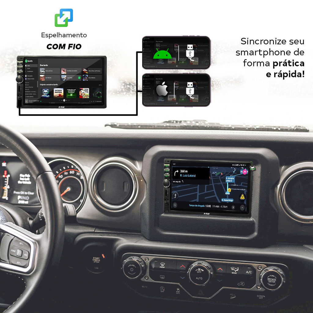 Multimídia Universal 7 pol Mp5 Ips 1 Din Espelhamento Android Ios Bt