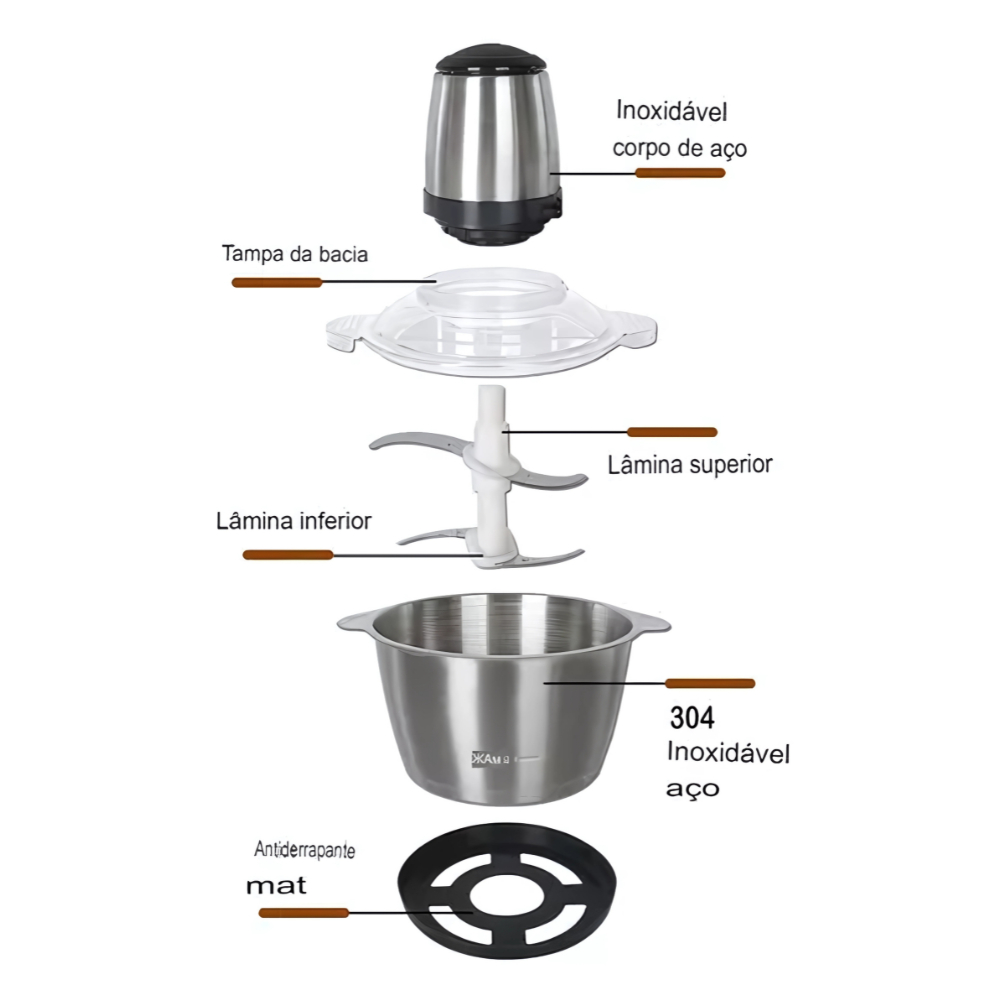 Multiprocessador Triturador Alimentos Carne Elétrico Potente Cor Metal 2L OU 3L TADASHOPE