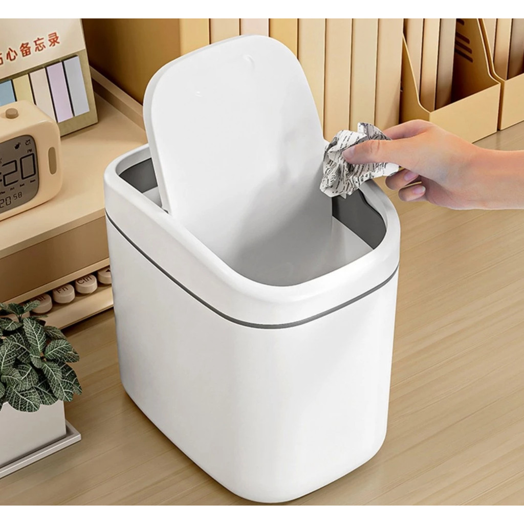 Multiuso Mini Lixeira De Mesa Com Tampa Lata De Lixo Plástico Organizador Decoração Portátil Casa