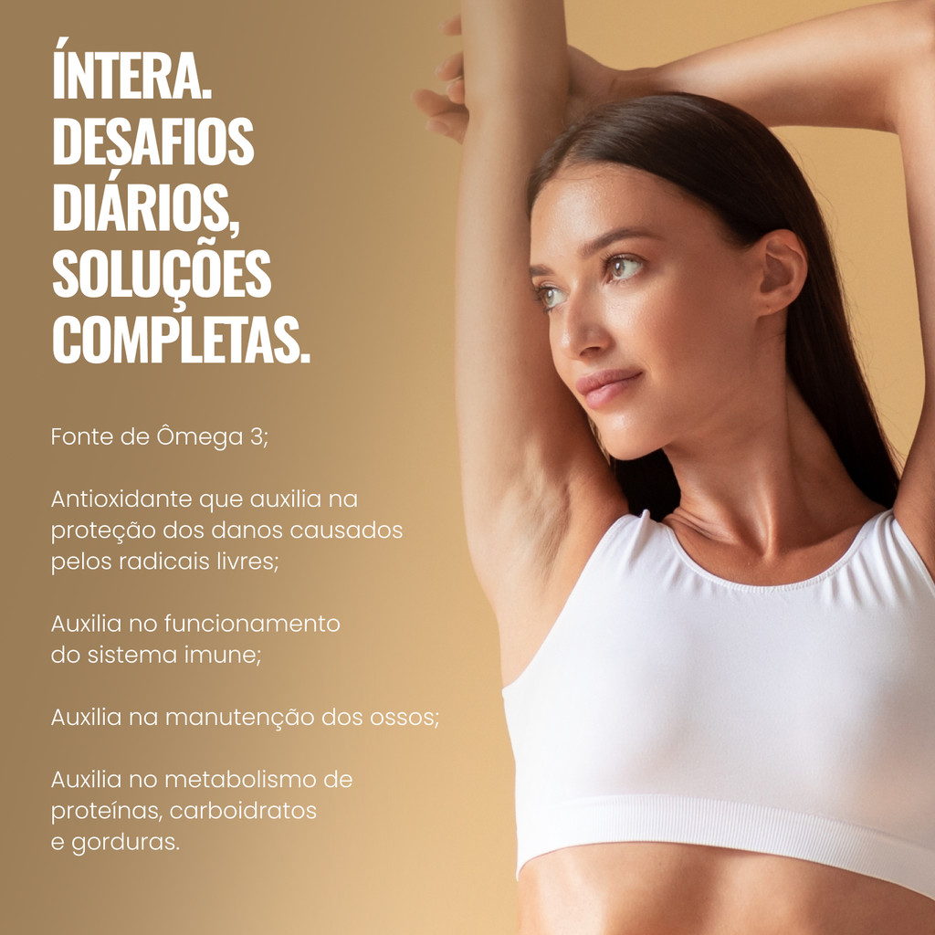 Suplemento Alimentar de Vitaminas e Minerais com Ômega 3 e Luteína em Cápsulas Principais benefícios: Fórmula completa com vitaminas e minerais essenciais, enriquecida com ômega 3 e licopeno. Contribui para a saúde do coração, pele, visão, sistema imune e equilíbrio nutricional diário. Fonte de antioxidantes e nutrientes que auxiliam no metabolismo energético e na proteção contra os danos causados pelos radicais livres. RECOMENDAÇÃO DE USO: Ingerir 2 cápsulas ao dia. INGREDIENTES: Óleo de girassol, óleo de peixe, óleo de prímula, bisglicinato de ferro, ascorbato de cálcio, água purificada, bisglicinato de zinco, acetato DL-alfa-tocoferol, nicotinamida, ésteres de luteína da flor de Tagetes erecta, tetraborato de sódio decahidratado, D-pantotenato de cálcio, L-selenometionina, sulfato de manganês, bisglicinato de cobre, cloridrato de piridoxina, mononitrato de tiamina, menaquinona-7,palmitato de retinol, riboflavina, L-metilfolato de cálcio, picolinato de cromo, molibdato de sódio, iodeto de potássio, D-biotina, fitomenadiona, colecalciferol, cianocobalamina, gelificante gelatina, umectante glicerol, emulsificante lecitina, estabilizante cera de abelha, corantes óxido de ferro preto e clorofilina cúprica e antioxidantes DL- alfa-tocoferol e mistura concentrada de tocoferóis. ALÉRGICOS: contém derivados de peixe e soja e pode conter leite, ovos, amendoim, amêndoa, avelãs, castanha-de-caju, castanha-do-pará, macadâmias, nozes, pecãs, pistaches, pinoli, castanhas, crustáceos (krill e caranguejo), trigo, centeio, cevada, aveia e suas estirpes hibridizadas e seus derivados. contém glúten. Não contém quantidades significativas de carboidratos, açúcares totais, açúcares adicionados, fibras alimentares e sódio.
