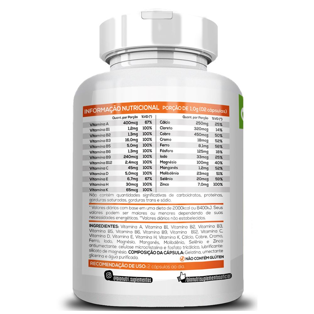 Multivitamínico AZCaps Para Todos De A-Z Natural 500mg 120 Cápsulas - ORIGINAL BIONUTRI