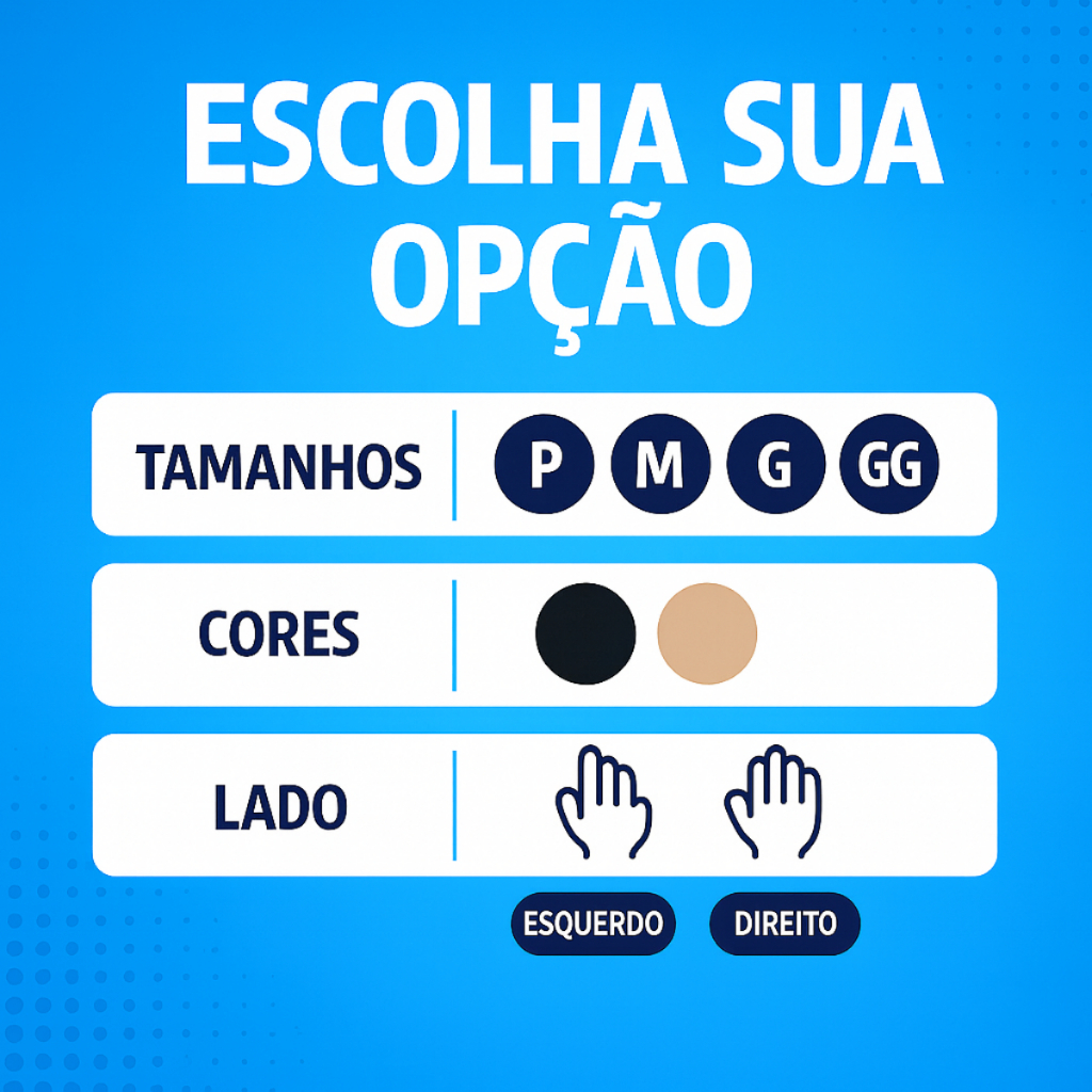Benefícios: - Indicado para imobilização do pulso e polegar em casos de lesões, traumas ou pós-retirada de gesso. - Produto proporciona descanso aos movimentos do pulso e polegar, corrigindo posições viciosas e aliviando dores causadas por tendinite e tenossinovites na região. - Utilizado por pessoas sujeitas às lesões por esforços repetitivos (L.E.R). Qual tamanho comprar? Utilize as medidas abaixo como referência para determinar o tamanho do produto: P - Abaixo de 15 cm de largura na altura do pulso. M - entre 16 e 18 cm de largura na altura do pulso. G - entre 19 e 20 cm de largura na altura do pulso. GG - Acima de 21 cm de largura na altura do pulso. Embalagem: Contém 1 (uma) unidade. ANVISA: AF Nº 8.04.537-8 Responsável Técnica: Dra. Graziele Cristina Silva de Moraes – CREFITO-3 Nº 316034-F CREFITO: RE Nº 5435-SP