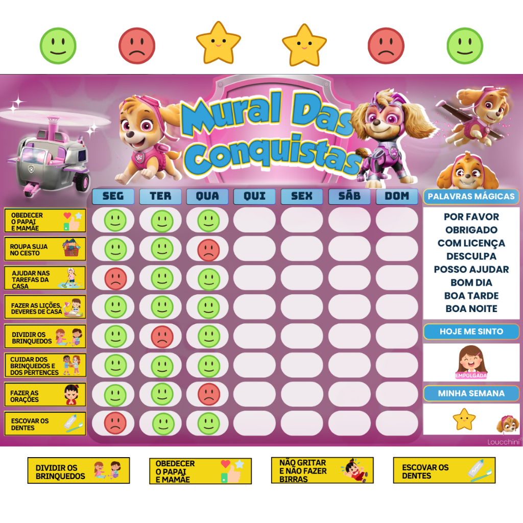 Mural das Conquistas e Rotina Infantil – Patrulha Canina Skye 22x30
