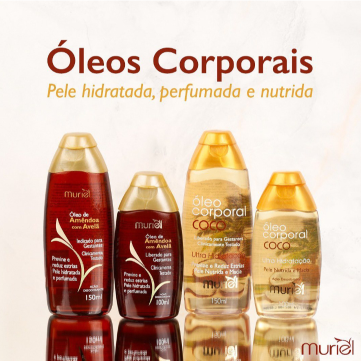 Os Óleos Corporais Muriel possuem uma fórmula especial que hidrata profundamente e perfuma a pele ao mesmo tempo, proporcionando um cuidado completo dentro e fora do banho. ✨ Benefícios: 💧 Hidratação Intensa Ajuda a manter a pele macia, hidratada e com aparência saudável. 🌸 Perfume Duradouro Deixa a pele delicadamente perfumada, proporcionando uma sensação de frescor e bem-estar. 🛁 Uso Dentro e Fora do Banho Textura leve que espalha facilmente e enxágua sem deixar a pele pegajosa. 🌿 Toque Sedoso e Aveludado Promove uma sensação de pele macia, suave e bem cuidada. 🤰 Auxilia na Prevenção de Estrias Ajuda na hidratação da pele, podendo auxiliar na prevenção de estrias. Produto liberado para gestantes. 📌 Resultado: Pele hidratada, perfumada, macia e com toque sedoso.