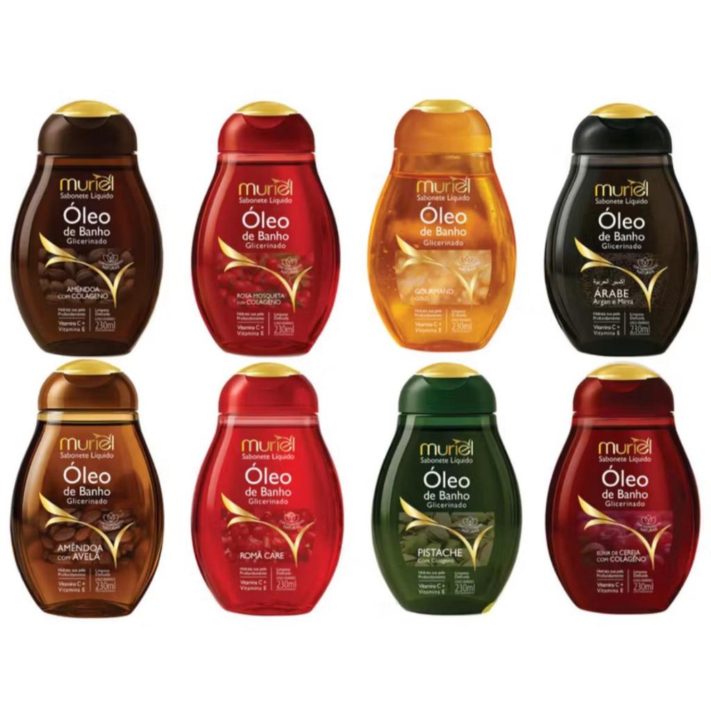 🛁 Óleo de Banho Glicerinado Muriel – Hidratação e Perfume na Medida Certa! Transforme seu banho em um ritual de beleza e autocuidado com os Óleos de Banho Glicerinados Muriel. Com fórmula glicerinada e textura envolvente, eles hidratam profundamente, nutrem a pele e formam uma película protetora que retém a umidade natural, deixando a pele macia, cheirosa e radiante o dia todo. 🌰 Amêndoas com Avelã – Nutrição e Maciez Intensiva Uma explosão de cuidado para sua pele! Combinando óleos de amêndoas e avelã, este óleo forma uma barreira nutritiva que protege e hidrata profundamente. Ideal para peles secas e sem viço, garante toque suave e brilho natural desde o primeiro uso. 👉 Nutrição profunda + hidratação duradoura. 🌿 Árabe (Argan & Mirra) – Sofisticação e Tradição no Banho Com o poder do óleo de argan e o toque exótico da mirra, este óleo de banho promove nutrição profunda, ação antioxidante e hidratação intensa. Ideal para quem busca um cuidado completo com um perfume marcante e elegante. 👉 Hidratação com um toque de luxo oriental. 💪 Amêndoas com Colágeno – Firmeza e Elasticidade O equilíbrio perfeito entre hidratação e firmeza! O óleo de amêndoas nutre, enquanto o colágeno ajuda a preservar a elasticidade natural da pele. Ideal para quem deseja manter a pele mais firme e jovem. 👉 Hidrata, firma e suaviza. 🍒 Cereja com Colágeno – Revitalização com Perfume Envolvente Sinta sua pele renovada com esse blend poderoso de extrato de cereja e colágeno. Promove revitalização intensa, deixando a pele mais macia e com um perfume frutado irresistível. 👉 Elasticidade + aroma marcante e doce. 🍎 Romã Care – Hidratação Suave com Ação Protetora Delicadeza e eficácia em um só produto! Enriquecido com extrato de romã e glicerina vegetal, limpa suavemente e protege a pele contra o ressecamento. Perfeito para peles sensíveis ou delicadas. 👉 Limpeza + barreira protetora natural. 🌹 Rosa Mosqueta com Colágeno – Regeneração e Cuidado Diário Rico em óleo de rosa mosqueta e colágeno, este óleo ajuda a regenerar a pele, melhorar a elasticidade e restaurar a firmeza natural. Ideal para quem busca um toque restaurador no dia a dia. 👉 Pele mais firme, renovada e hidratada. ✨ Gourmand Gold – Luxo e Hidratação na Medida Certa Um verdadeiro banho de elegância! Com textura leve e perfume sofisticado, Gourmand Gold entrega uma experiência sensorial única, deixando a pele suave, perfumada e com um toque aveludado. 👉 Pele hidratada com um toque glamouroso. 💧 Por que amar os Óleos Glicerinados Muriel? ✔️ Fórmula glicerinada de rápida absorção ✔️ Pele protegida e hidratada durante e após o banho ✔️ Fragrâncias marcantes e envolventes ✔️ Ideal para todos os tipos de pele ✔️ Uso diário com sensação de spa em casa 🧴 Modo de uso: Durante o banho, com a pele ainda úmida, aplique o óleo diretamente no corpo, massageando suavemente. Enxágue em seguida ou deixe agir como hidratante sem enxágue (opcional). Pode ser usado diariamente.