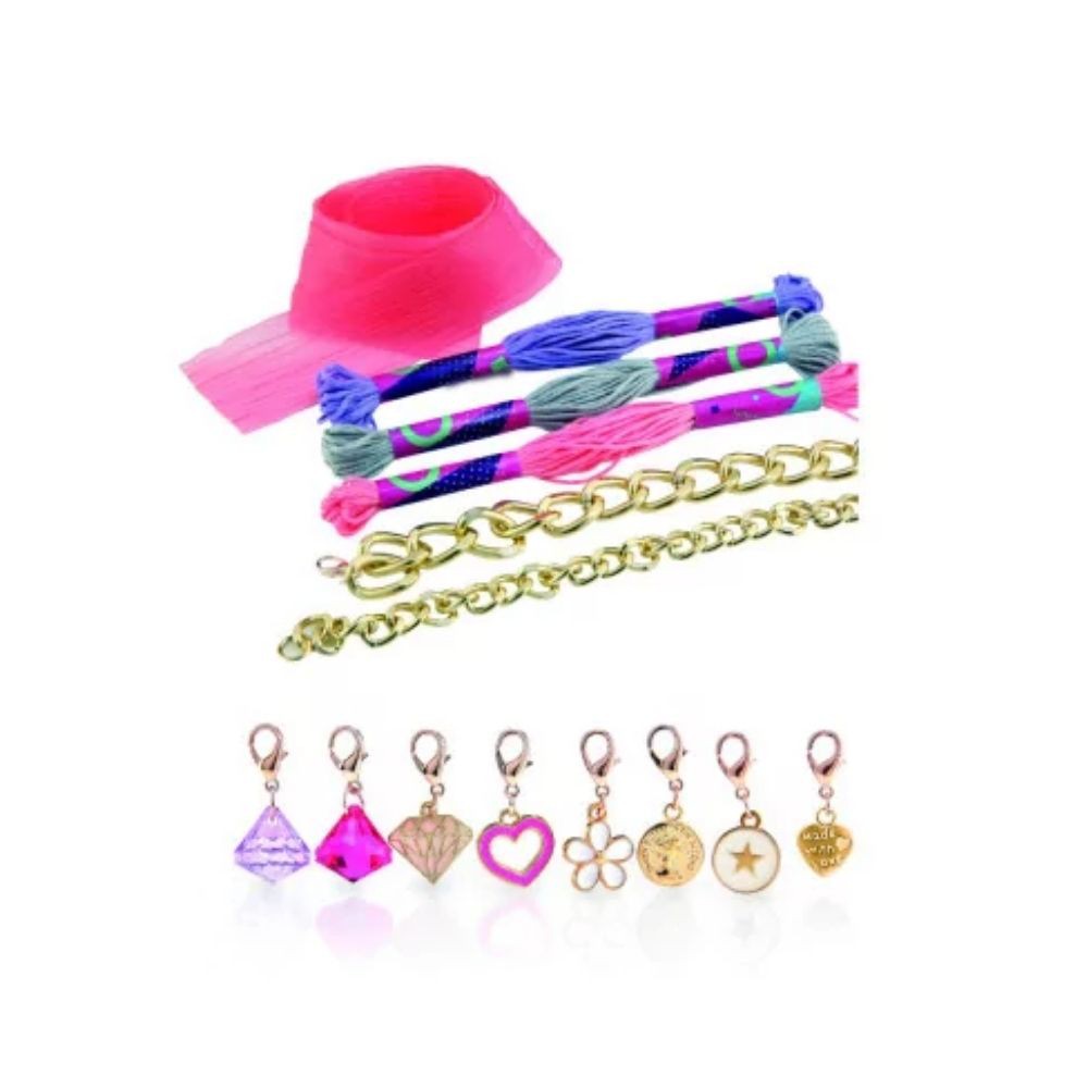 My Style Kit de Pulseiras de Seda da Multikids. Crie uma pulseira com a sua cara. É super fashion, são diversos pingentes e pedrinhas para montar e decorar as pulseira do jeito que imaginar. Características: - Marca: Multikids - Modelo: BR099 * Imagens meramente Ilustrativas Especificações: - Diversos Pingentes Para Montar e Decorar - Idade Recomendada: 6+ Anos - Cor Principal: Sortido - Contém: Braceletes Metálicos, Adornos Observação: - As cores podem variar entre as imagens mostradas acima e o produto - Imagens meramente ilustrativas Dimensões e Peso: - Dimensões (Embalagem A x L x C): 04X 19X 21cm - Peso (KG): 0,148Kg Conteúdo da embalagem: - My Style Pulseiras De Seda com Bracelets Metálicos e Adornos