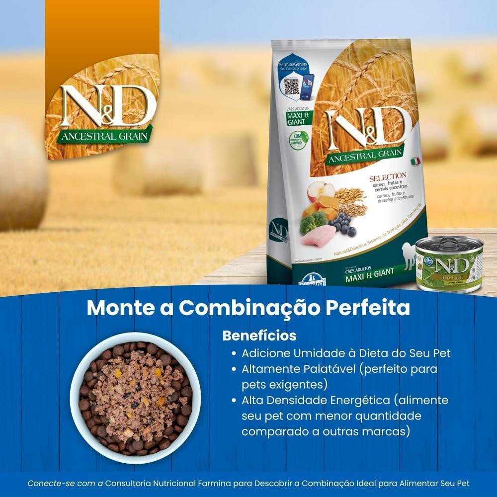 ND Ancestral Selection para Cães Adultos de Raças Grandes e Gigantes Sabor Carnes, Frutas e Cereais Ancestrais 15Kg Todas as informações divulgadas são de responsabilidade do fabricante/fornecedor Prazo de Validade: Vide Impresso na Embalagem.