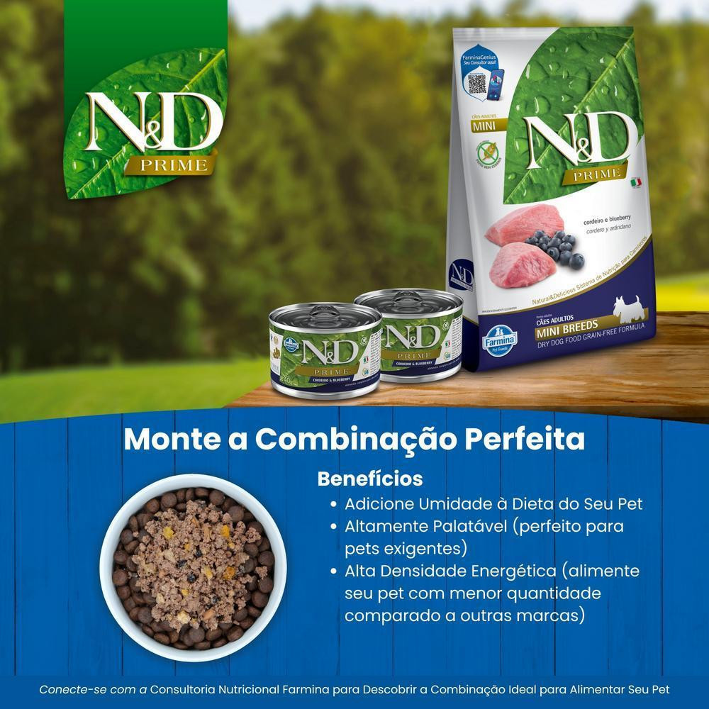 N&D Prime para Cães Adultos de Raças Mini e Pequenas Sabor Cordeiro e Blueberry 10,1Kg