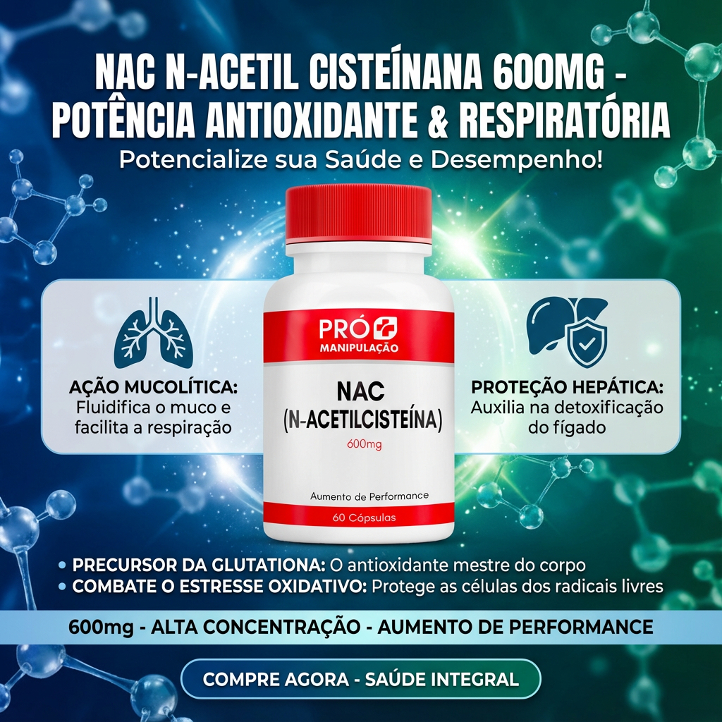 NAC 600mg Antioxidante Detox Imunidade 60 Cápsulas